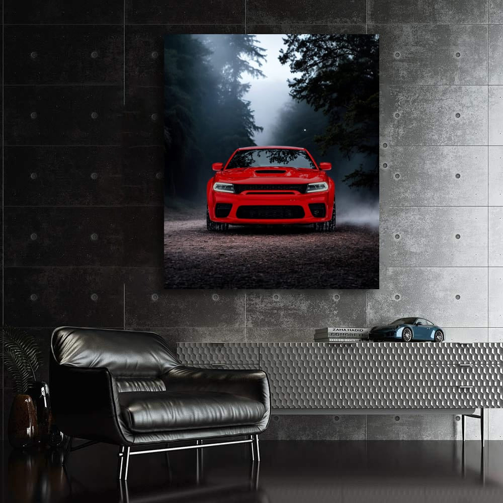 This poster is a beast in the world of wall art! Dodge Charger, shrouded in fog, as if it escaped from a nightmare. A painting for those who have gasoline in their veins and a heart that beats to the rhythm of a V8. Hang it - your neighbors will be jealous! See more from the collection: Dodge Art