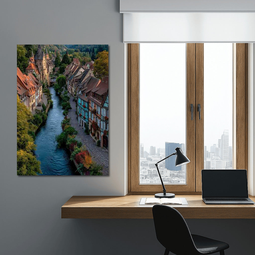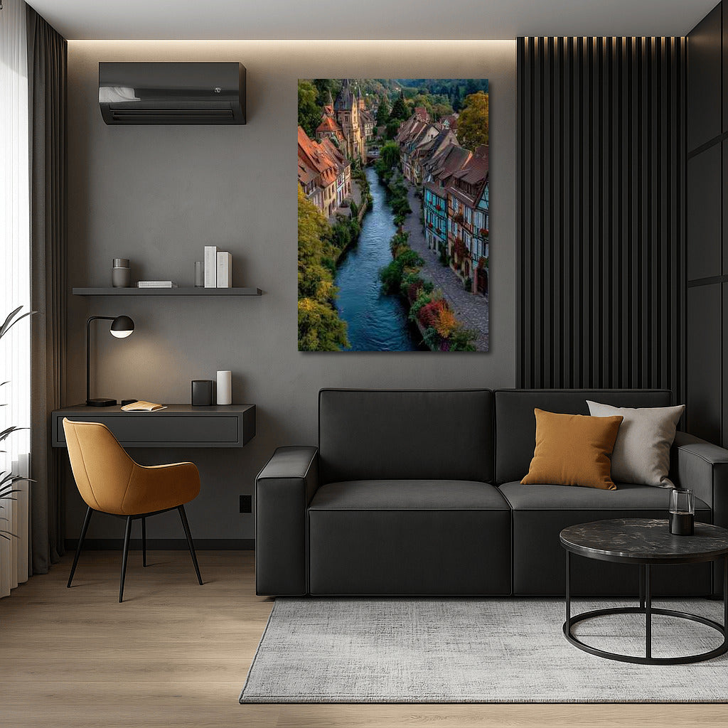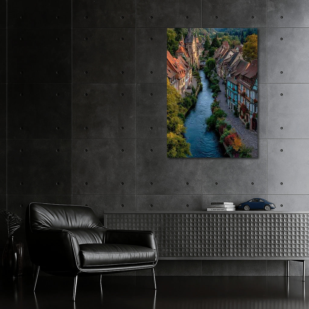 The charm of Germany: a quiet village with cozy houses and a paintingsque river. Dive into the world of village art with this poster. See more from the collection: Country Art