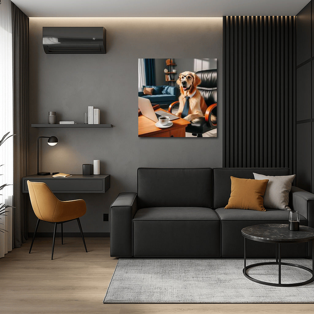 Your wall is waiting: Dog In the Office 3 poster! The charming four-legged boss will liven up any interior. See more from the collection: Animals Art