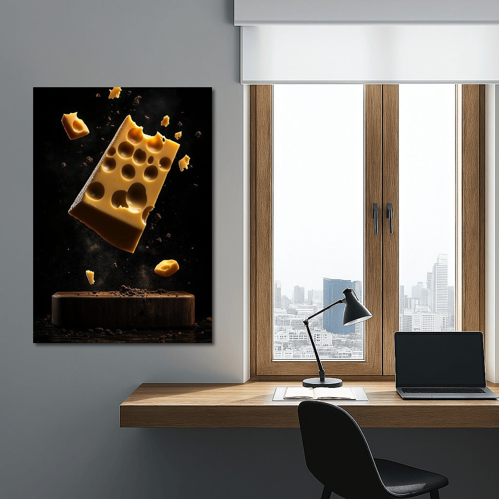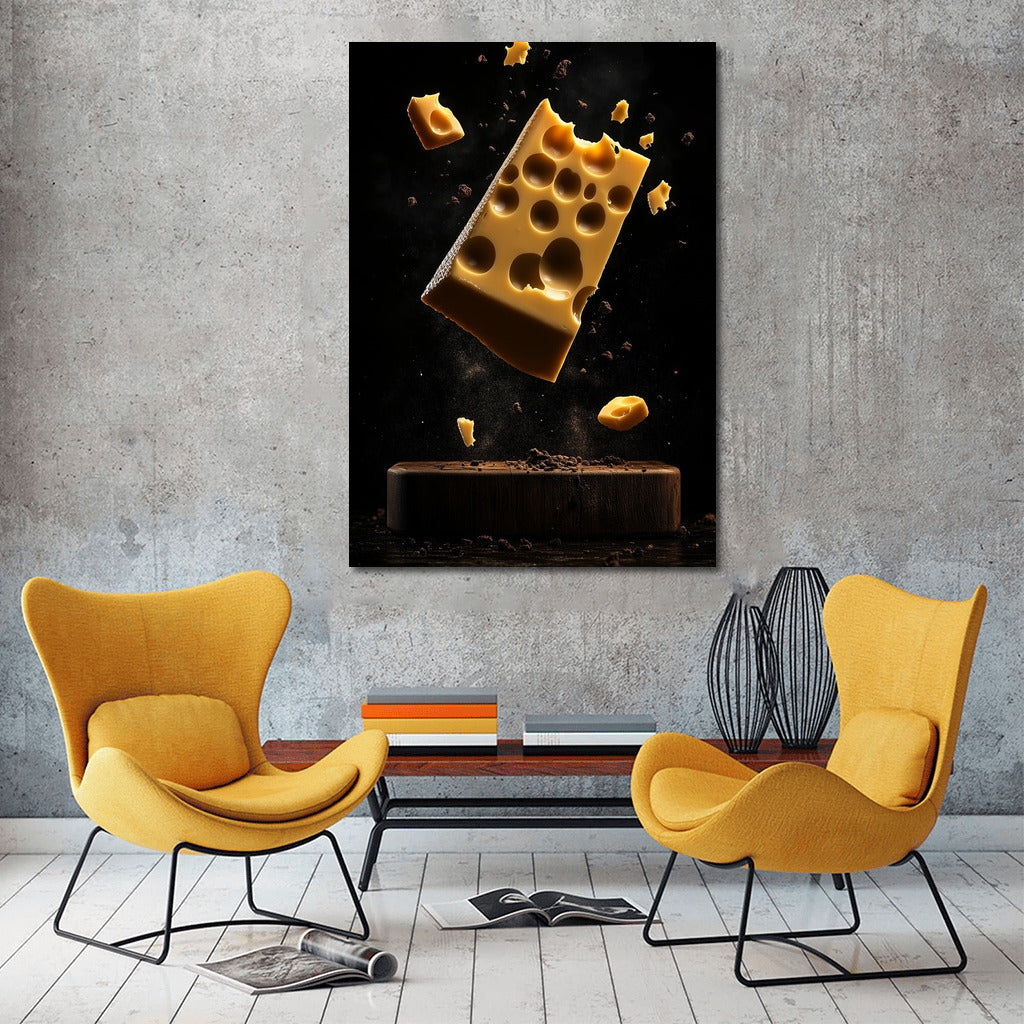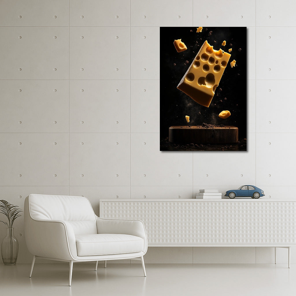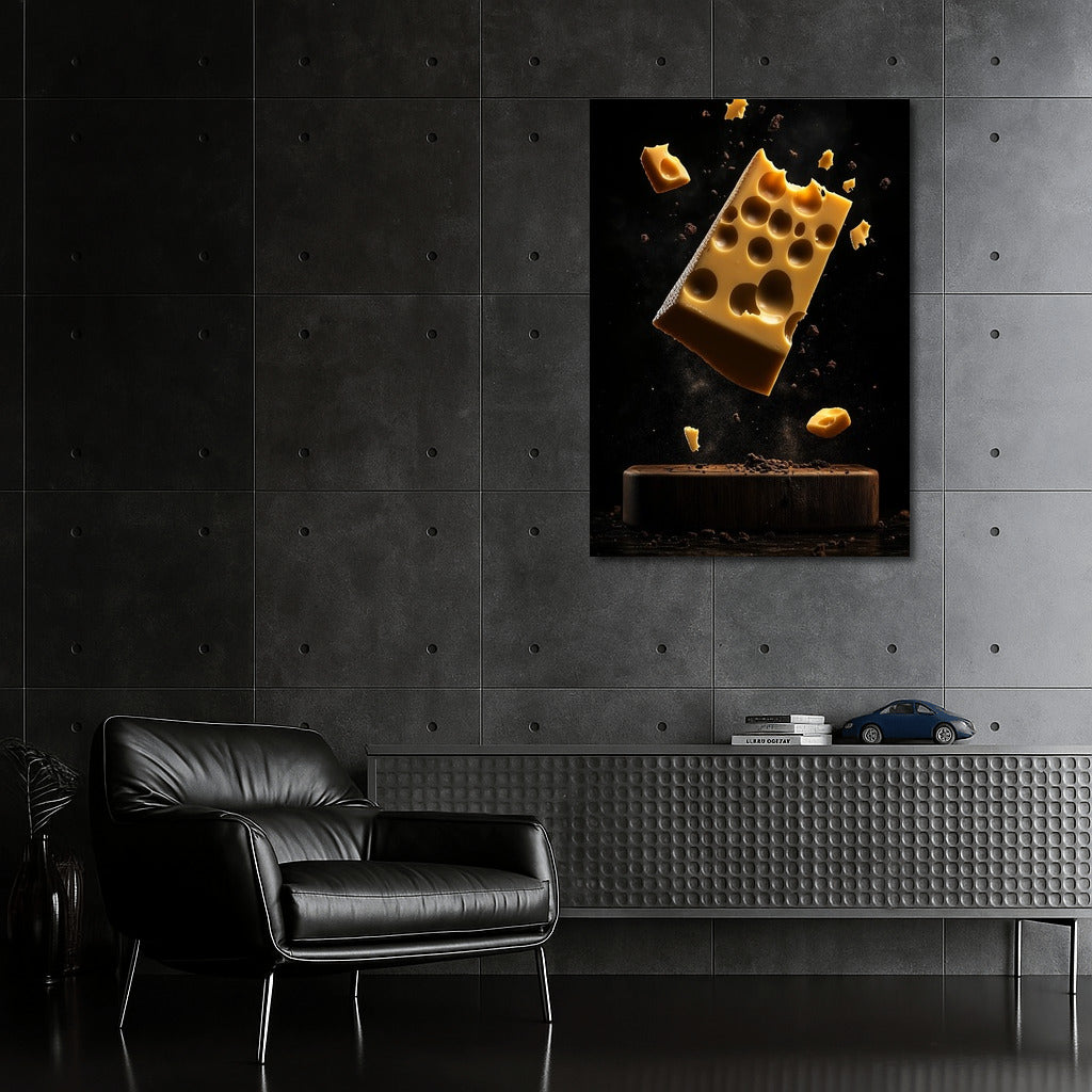 Floating Cheese: Mesmerizing wall art where cheese takes the form of art on your poster. Delicious magic in every look! See more from the collection: Cheese & Charcuterie Art