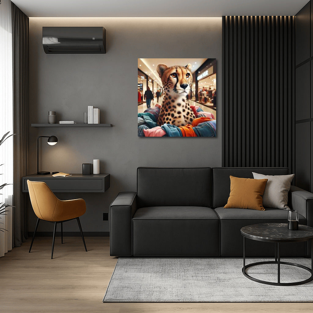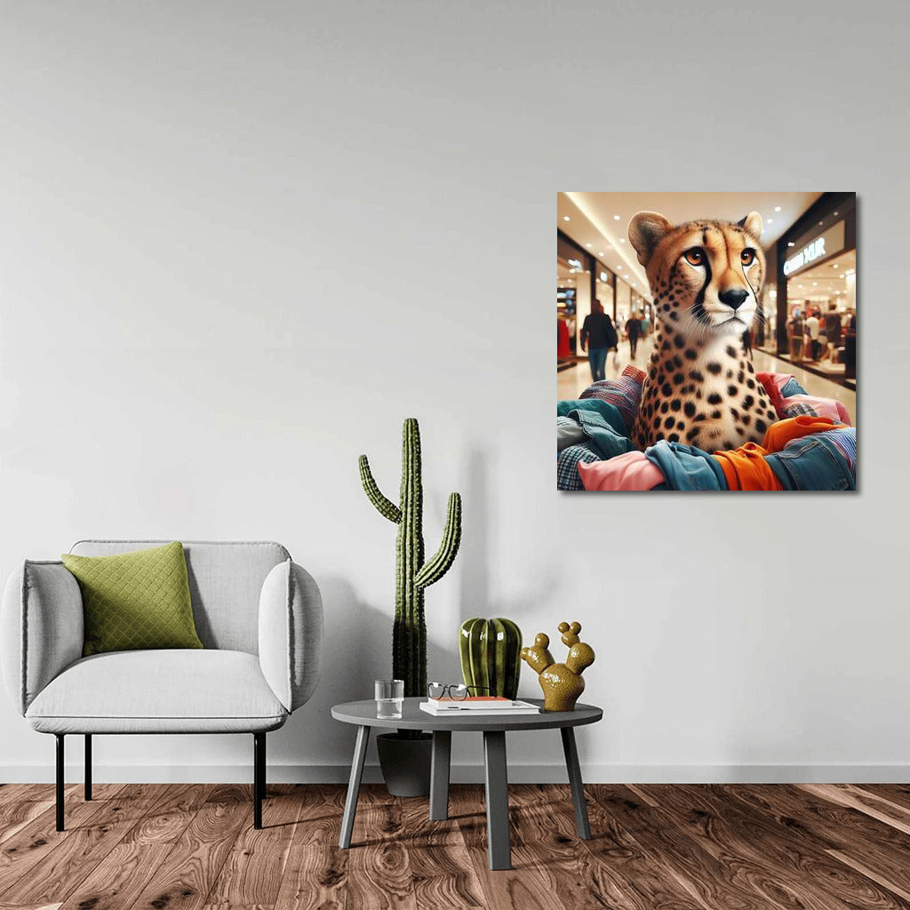 Cheetah on a Shopping Spree: Fashion Run at the Mall Wall Art