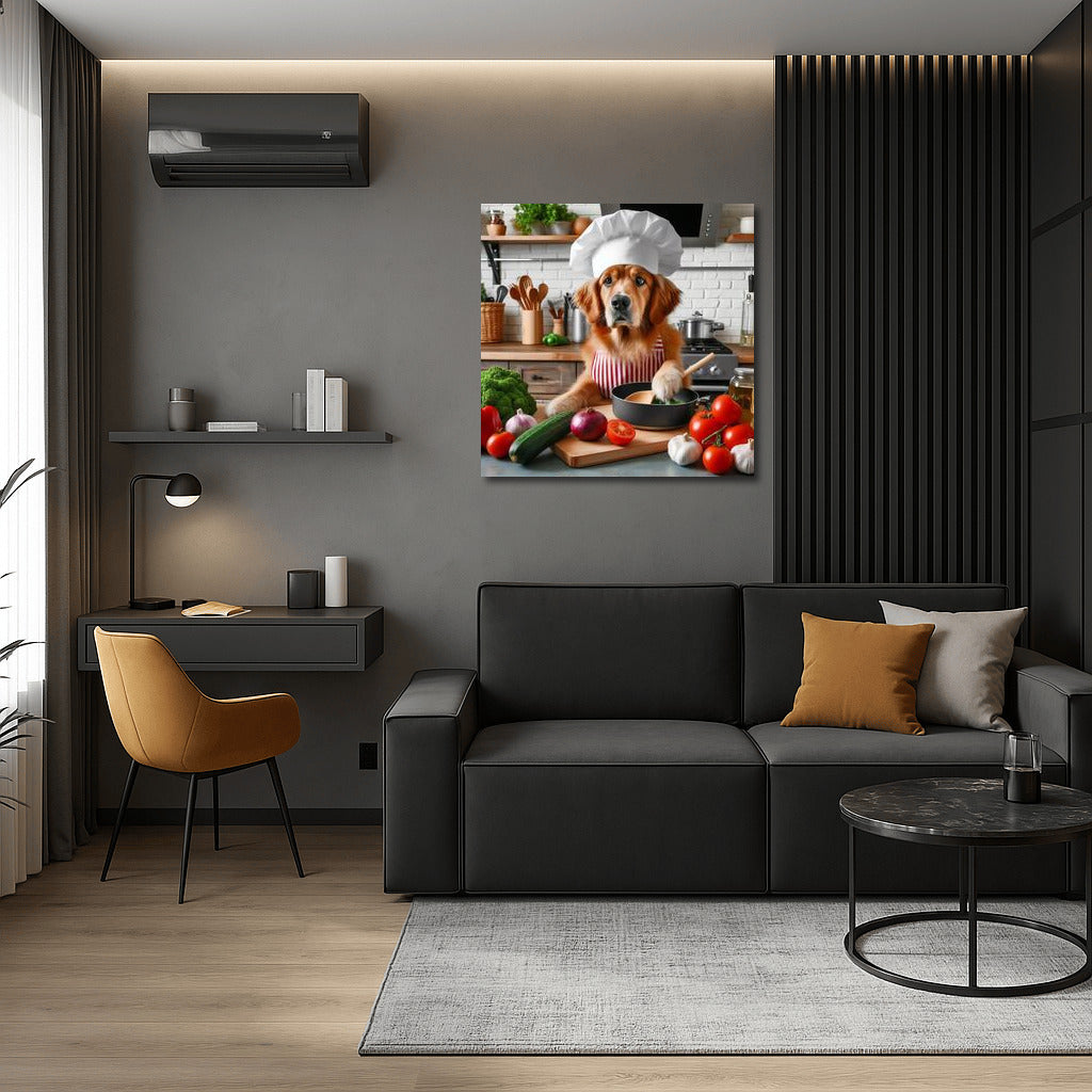Chef on Paws: Dog in a Hat Cooks Dinner Wall Art