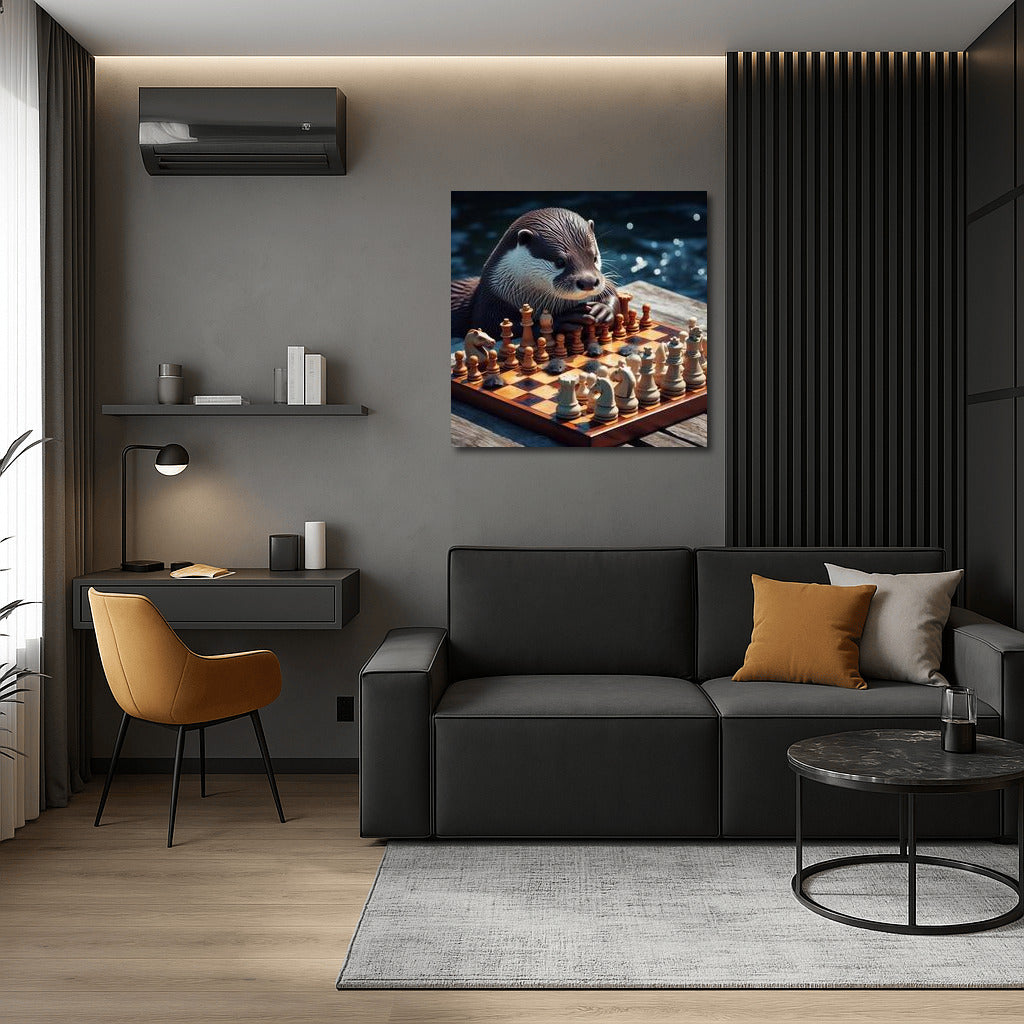 Otter plays chess: the pieces come to life and fight on the board. A fascinating poster for lovers of unique wall art! See more from the collection: Animals Art