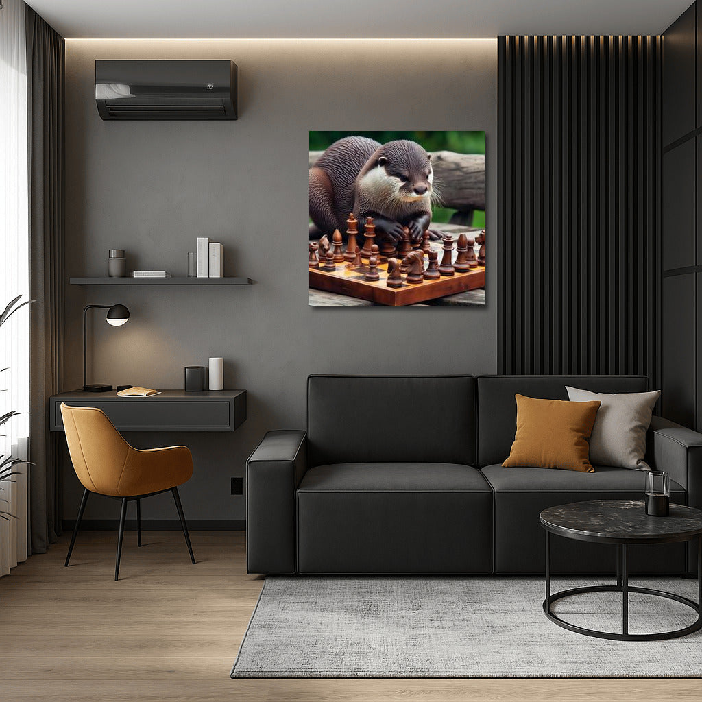 Chess Battle: Otter and the Living Pieces in the Game Wall Art