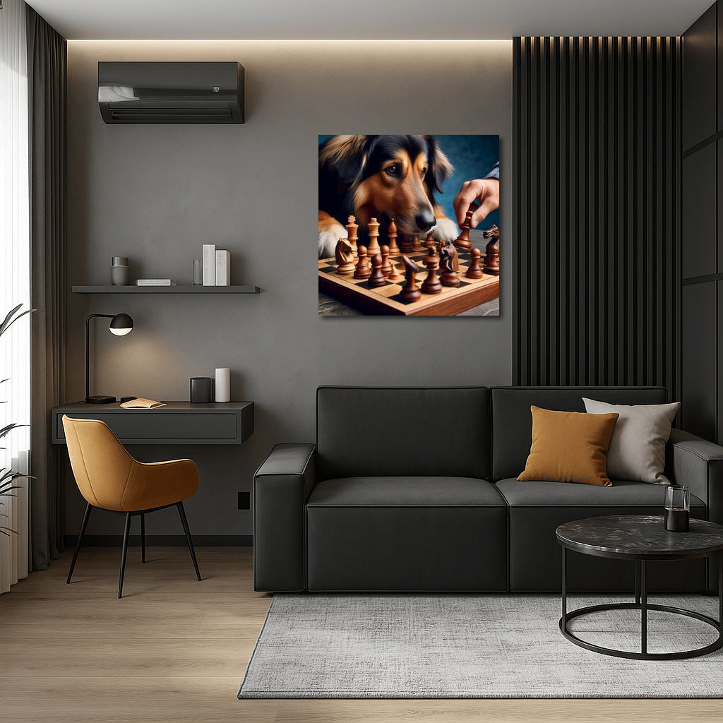 Chess Duel: Dog and Living Pieces in Combat Wall Art