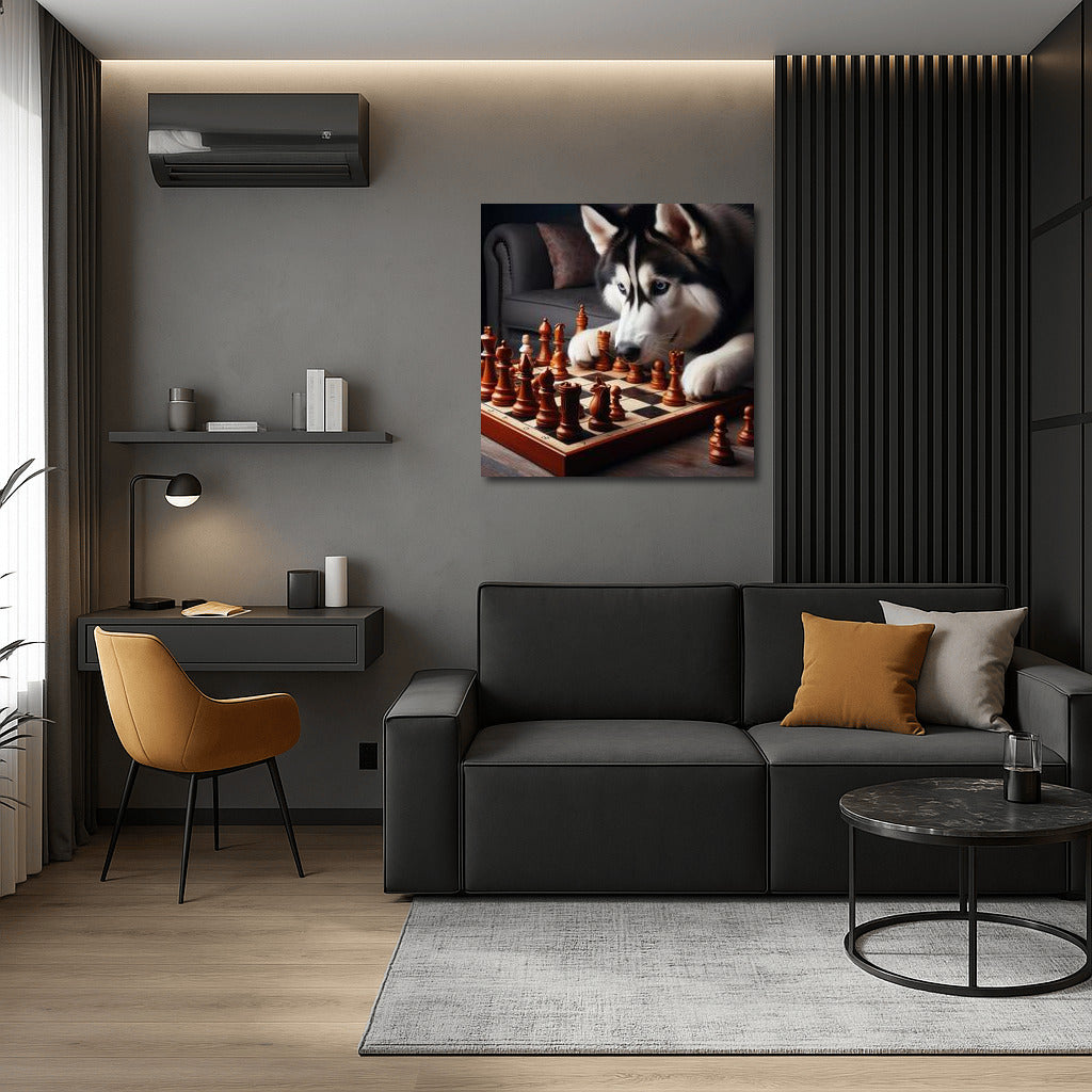 Chess duel with a Siberian Husky: living figures in action Wall Art