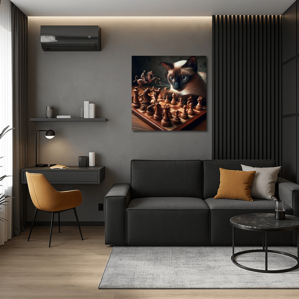 Chess Magic: Siamese Cat and Living Pieces Wall Art