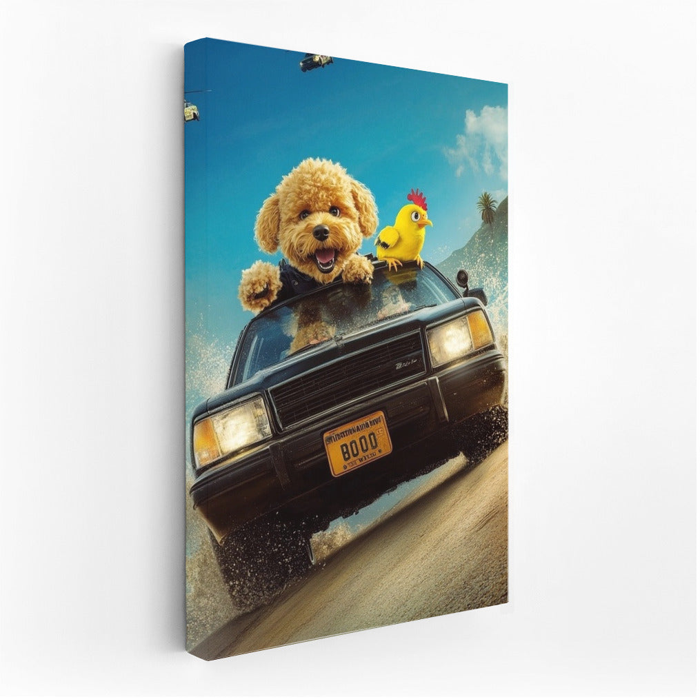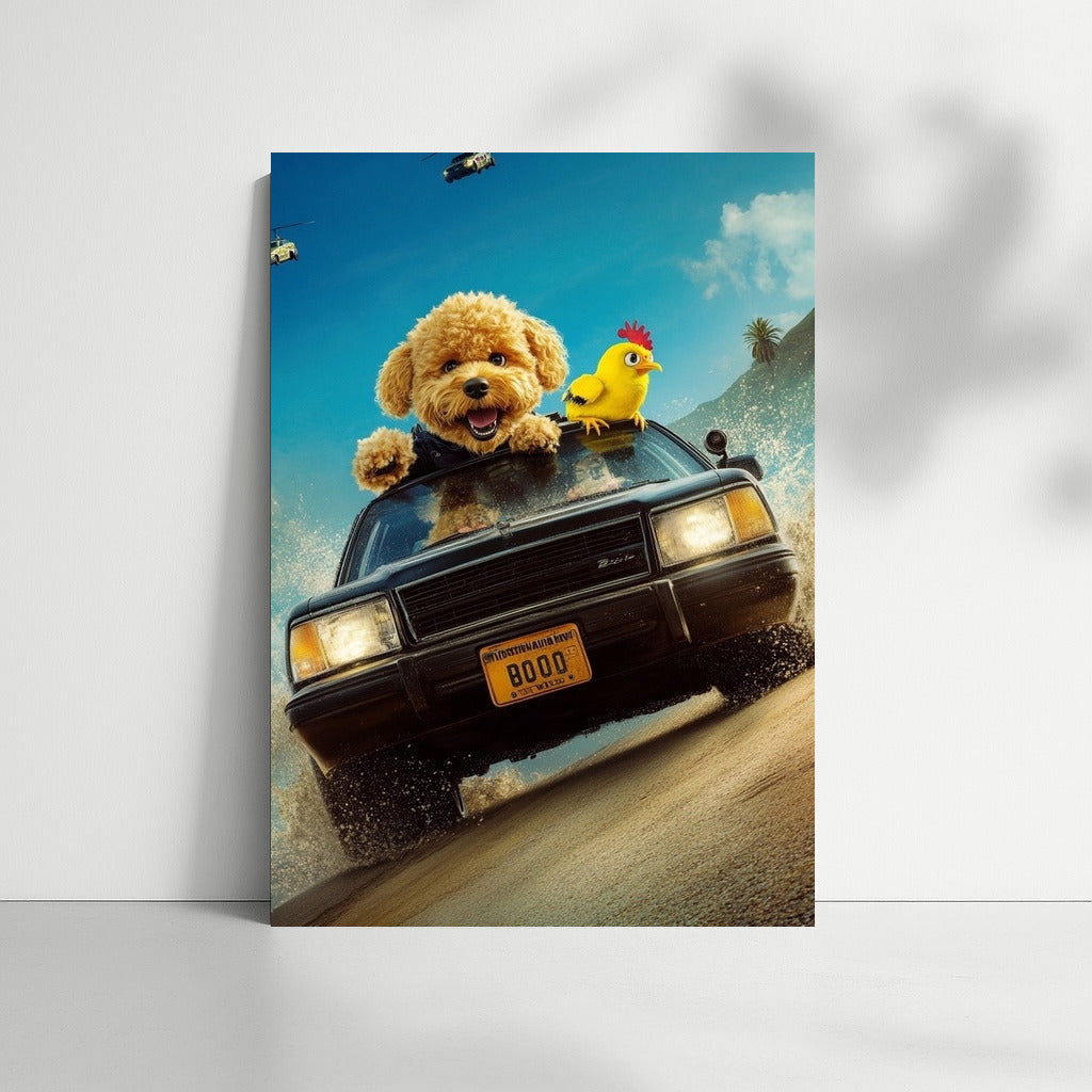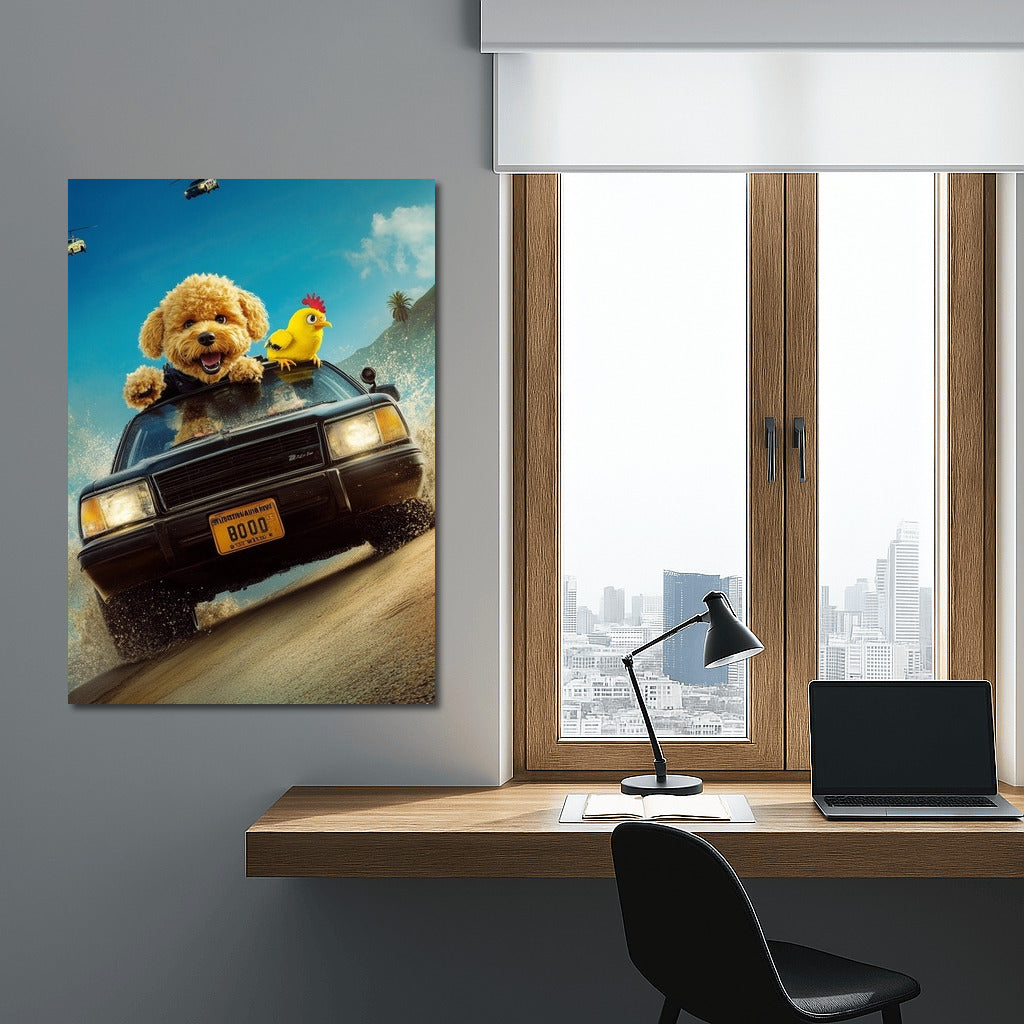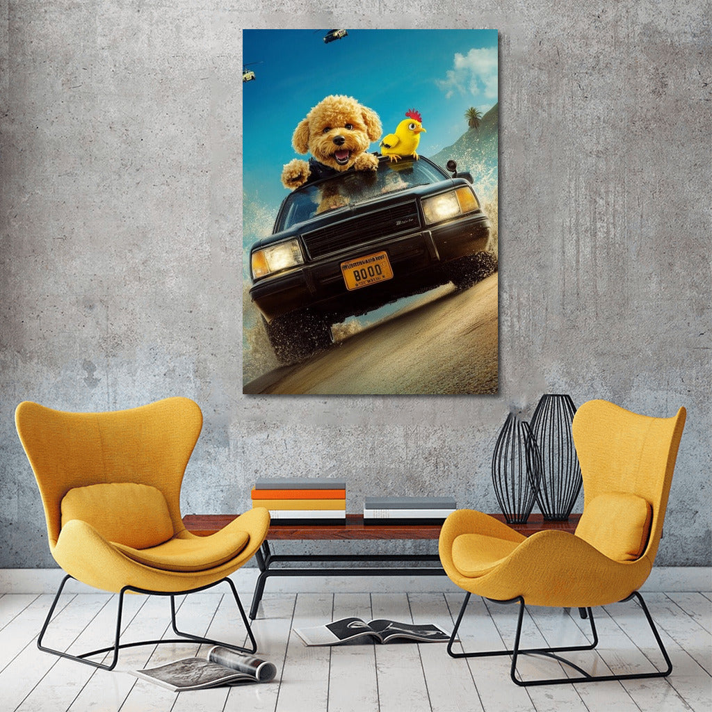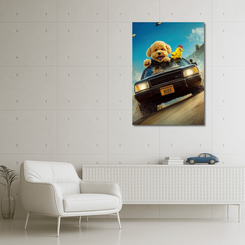 Adrenaline on the wall! A poster with a fun adventure in a classic Chevrolet, in the company of charming characters. See more from the collection: Mixed Wall Art