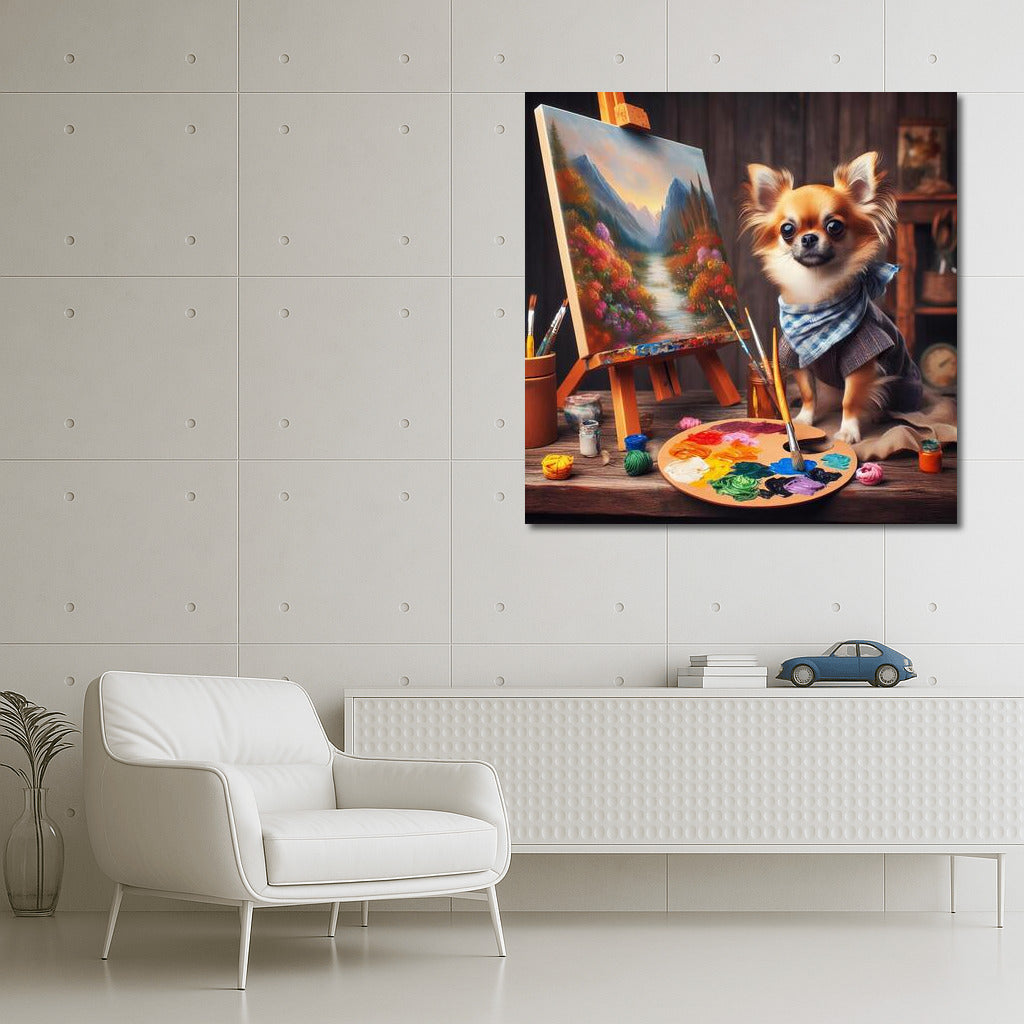 Chihuahua Artist: Fluffy Master with Brush and Palette Wall Art