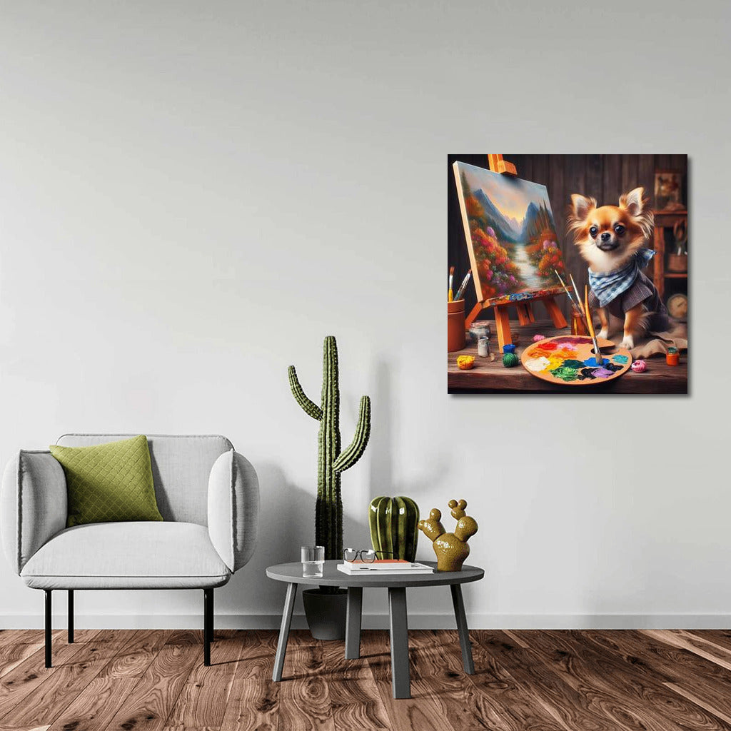 Adorable poster: Chihuahua artist creates a masterpiece on an easel. Wall art with furry inspiration! See more from the collection: Animals Art