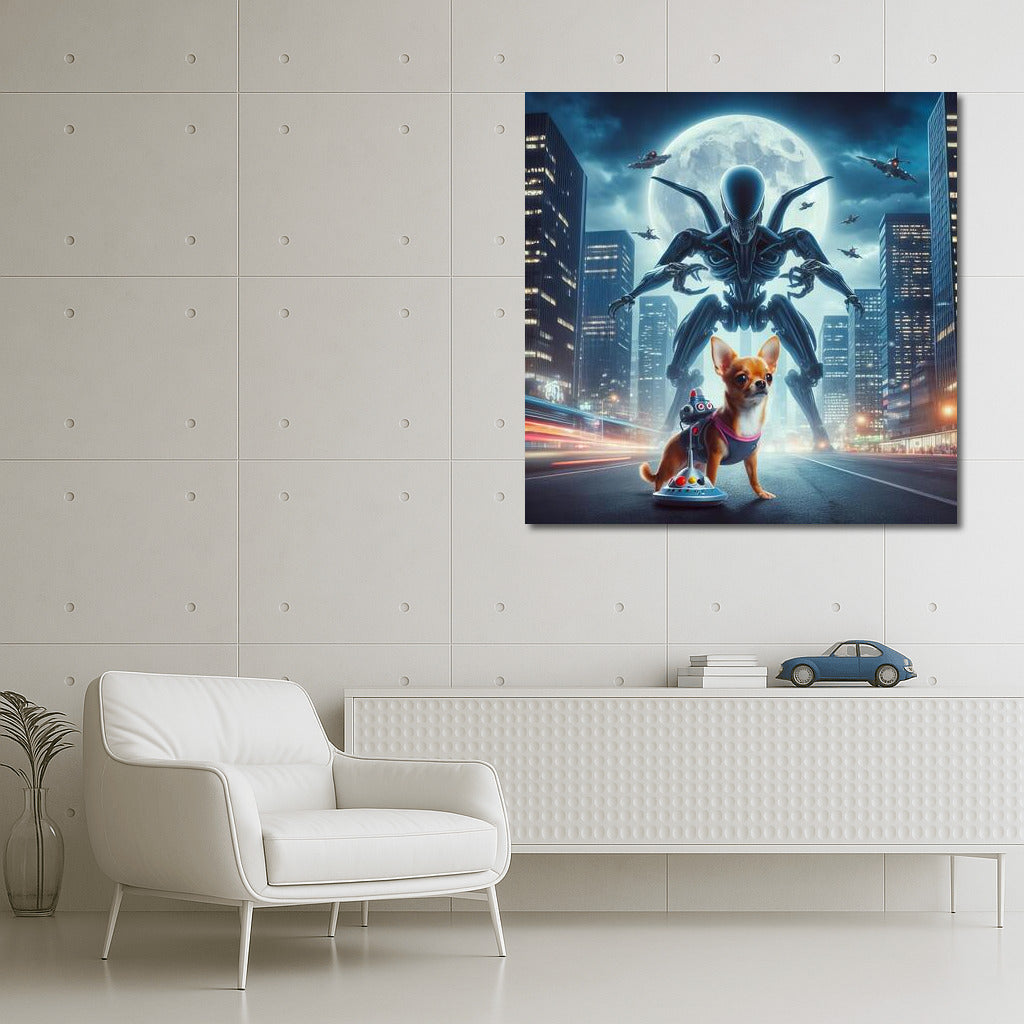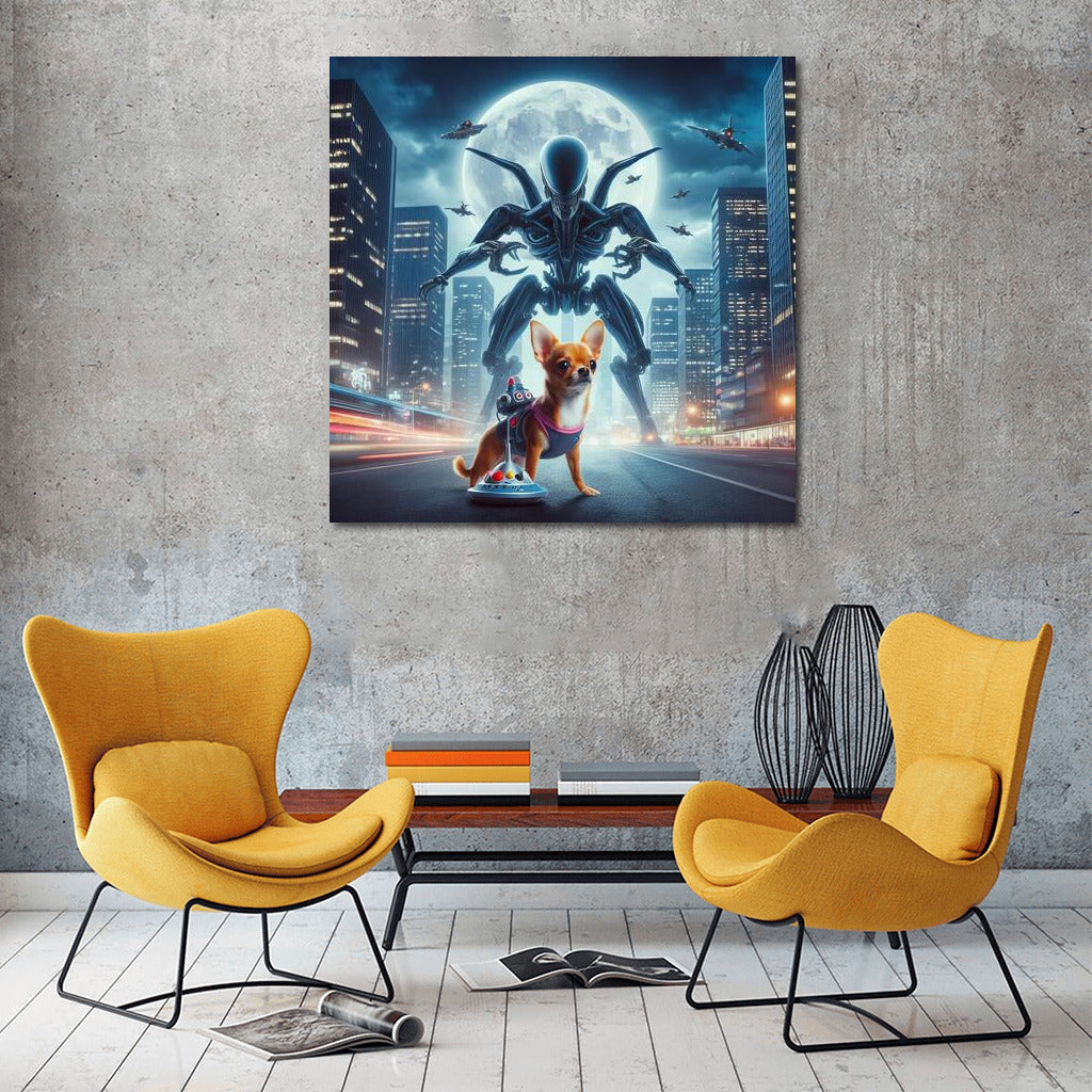 Chihuahua Hero: Robot City Defender from Aliens Wall Art