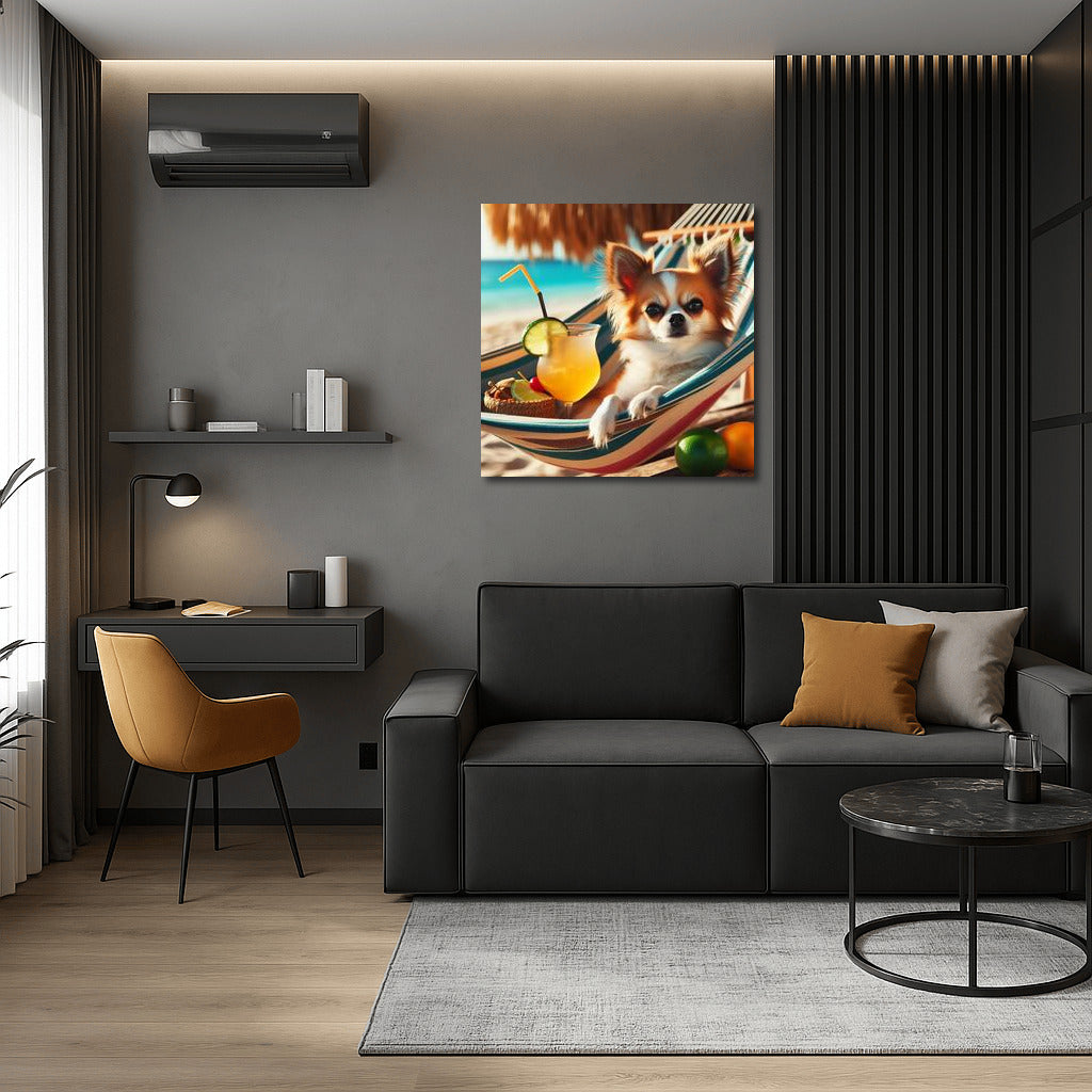 Chihuahua on the Beach: Cocktail Relaxation in a Hammock Wall Art