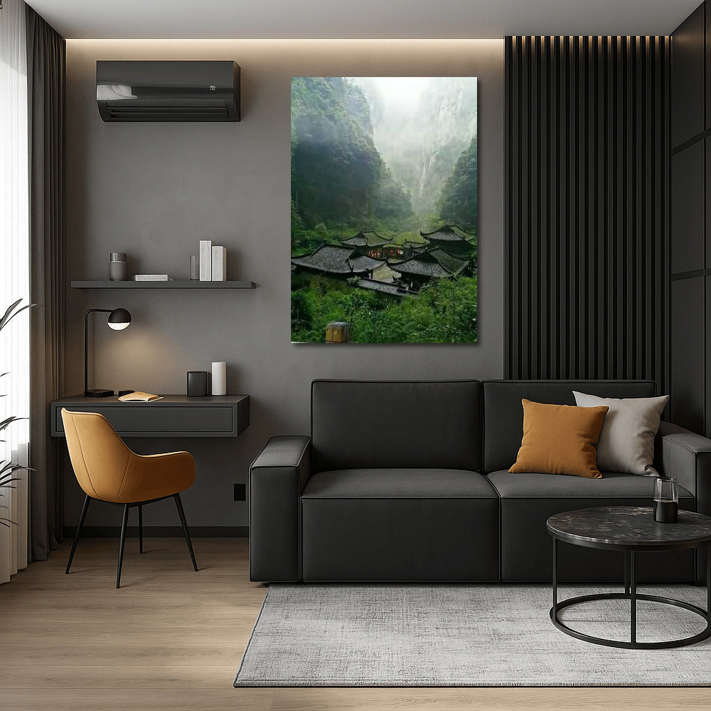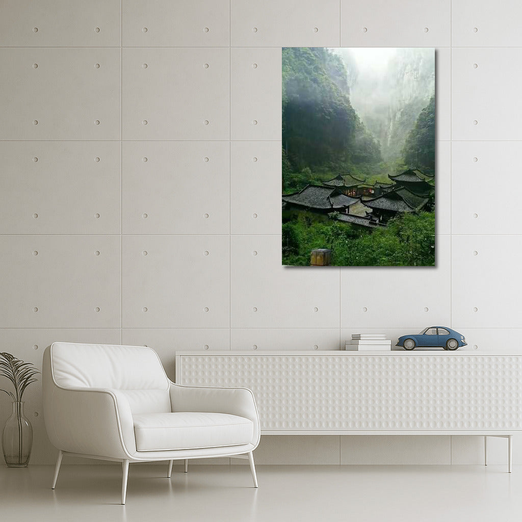 China's Misty Valley: Harmony of Traditional Rooftops Wall Art