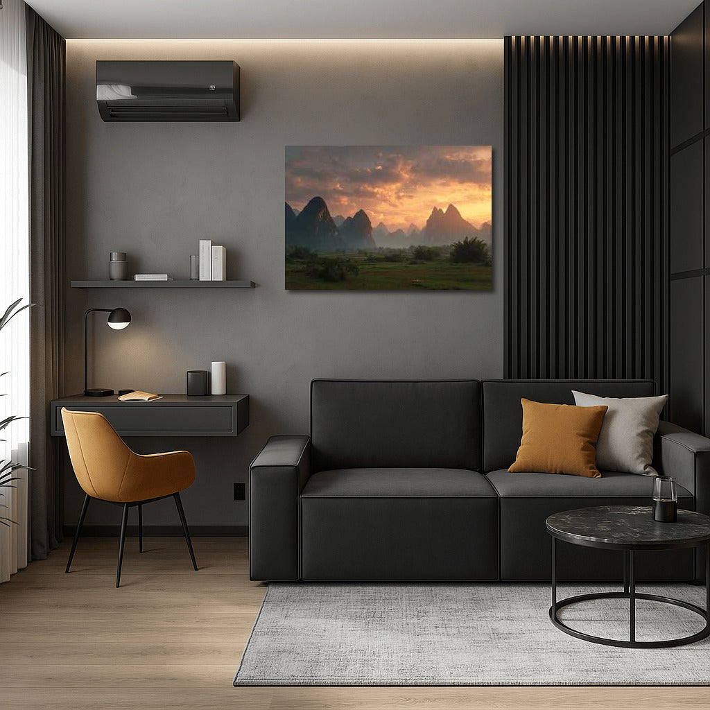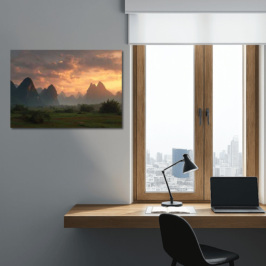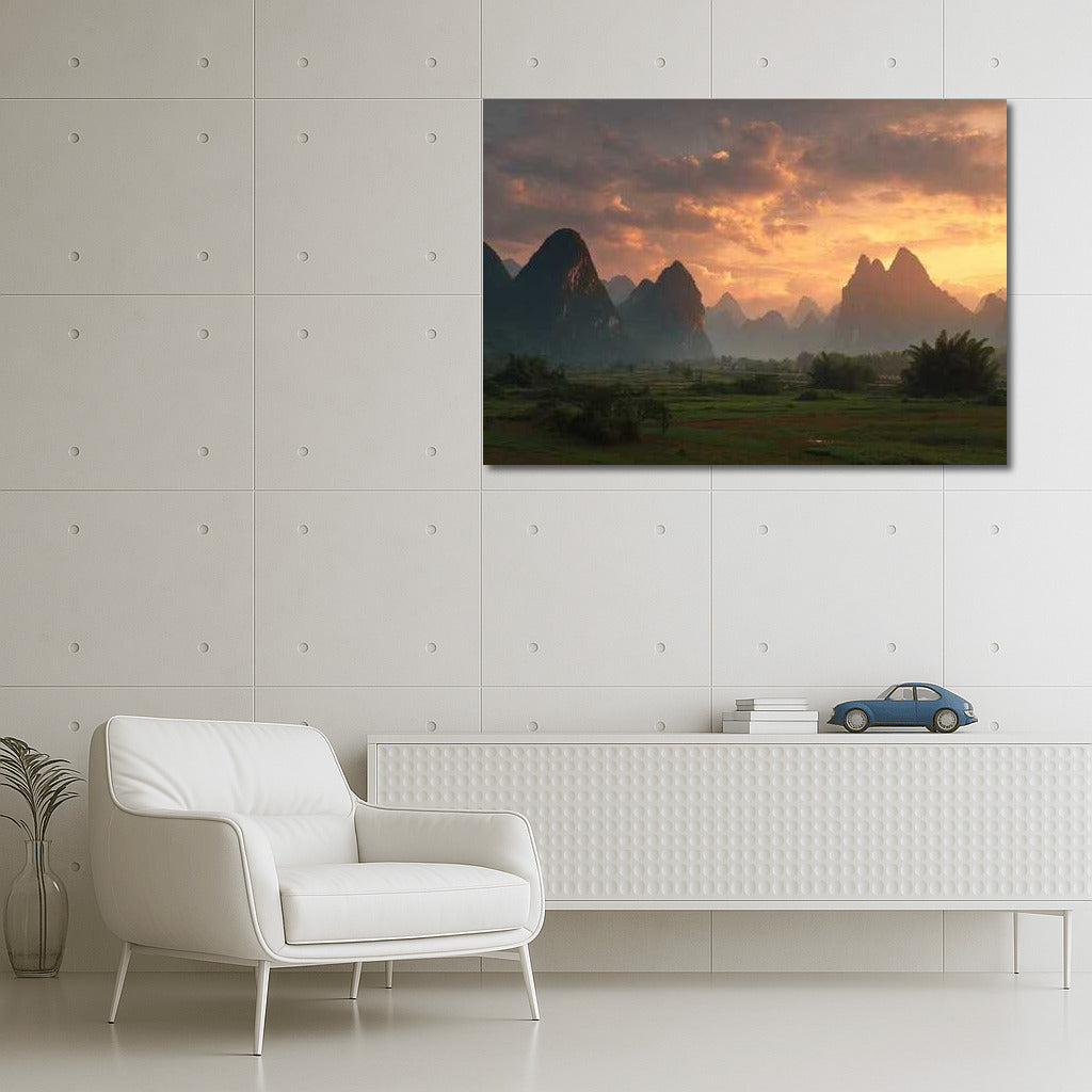 Breathtaking China Landscape Wall Art: paintingsque mountains and sky on canvas create a tranquil atmosphere. See more from the collection: China Art