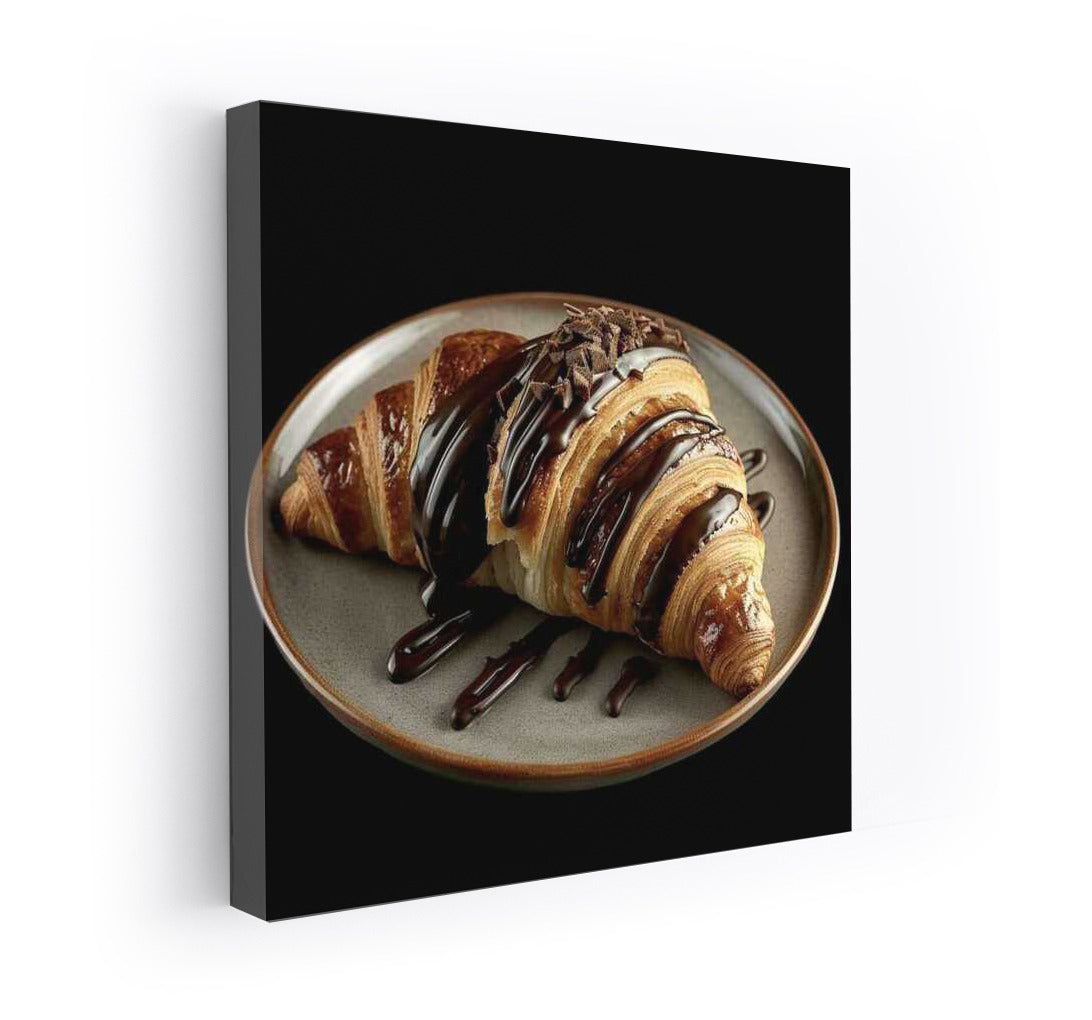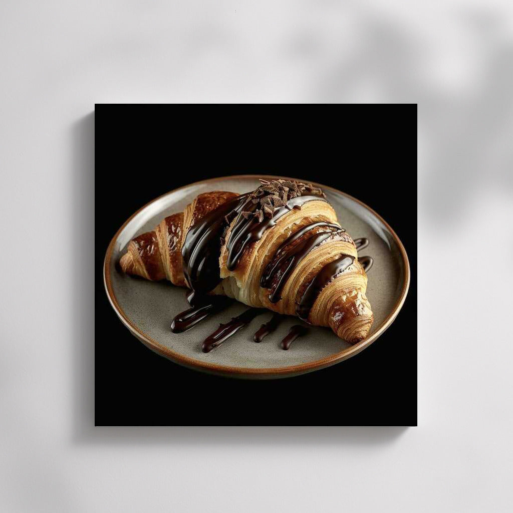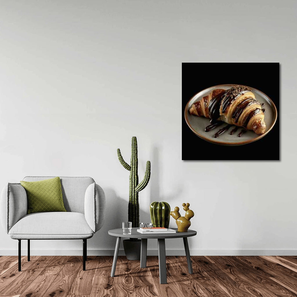 A poster of a delicious croissant generously drizzled with melted chocolate is wall art that will evoke sweet dreams. See more from the collection: Baked Goods Art