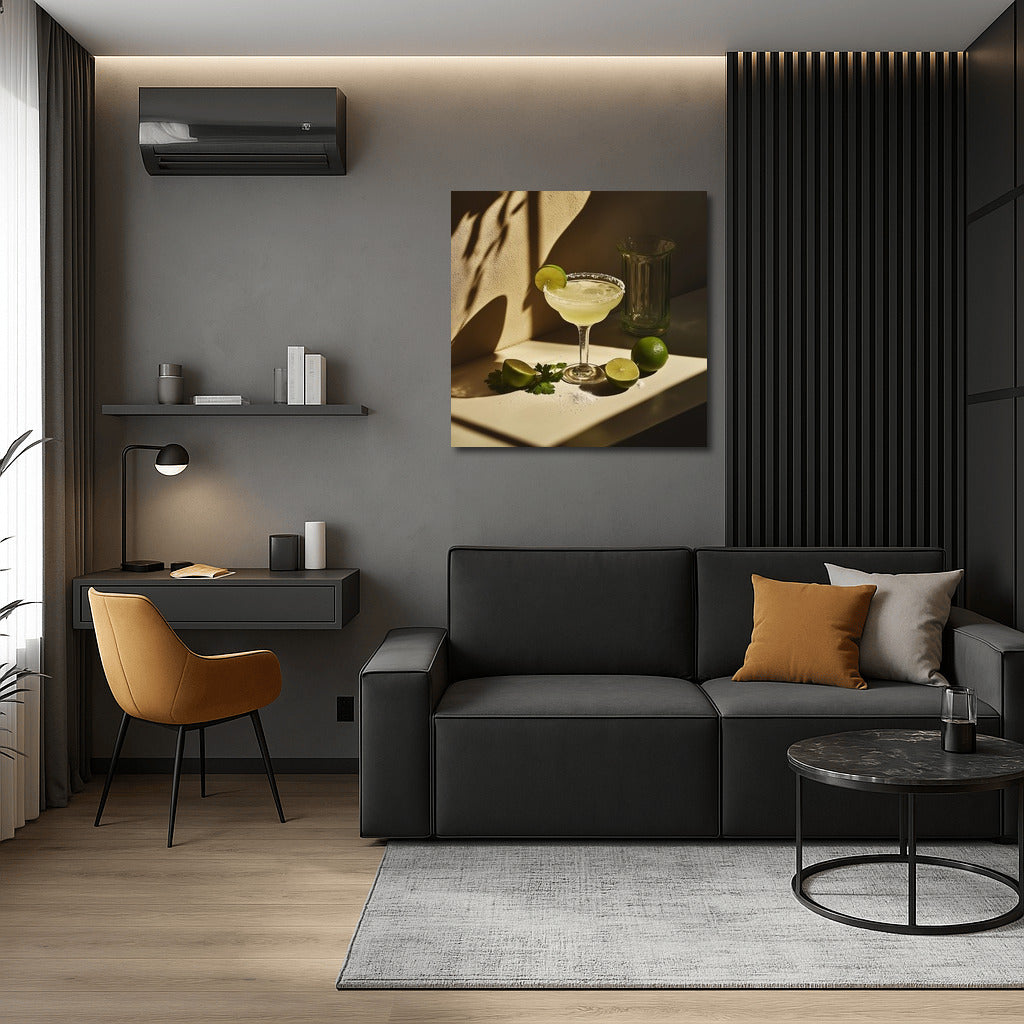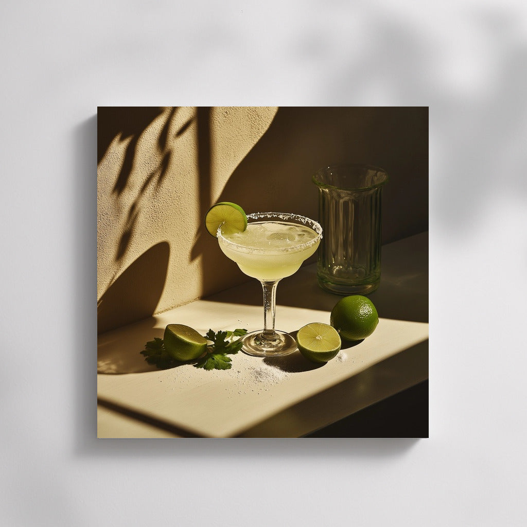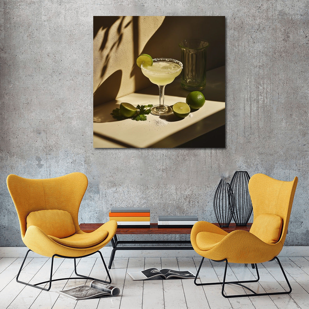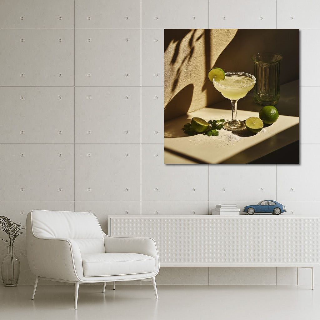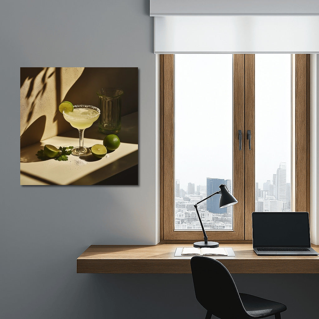 Subtle wall art: lime freshness in a glass on a sunny background - will add a stylish accent to your interior! See more from the collection: Coffee & Tea Art & Drinks