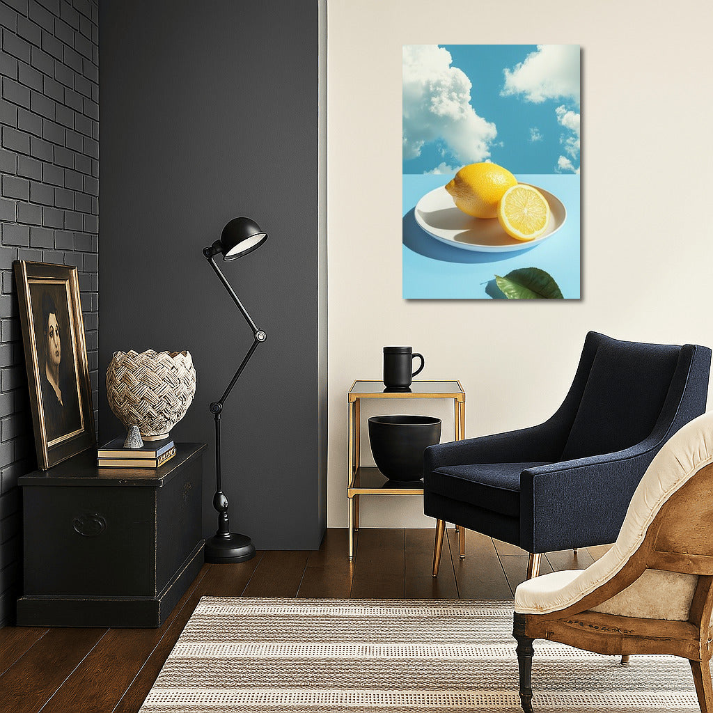 Freshness on canvas: a bright poster with lemons, clouds and a gentle sky will liven up your space. Perfect wall art! See more from the collection: Food Art