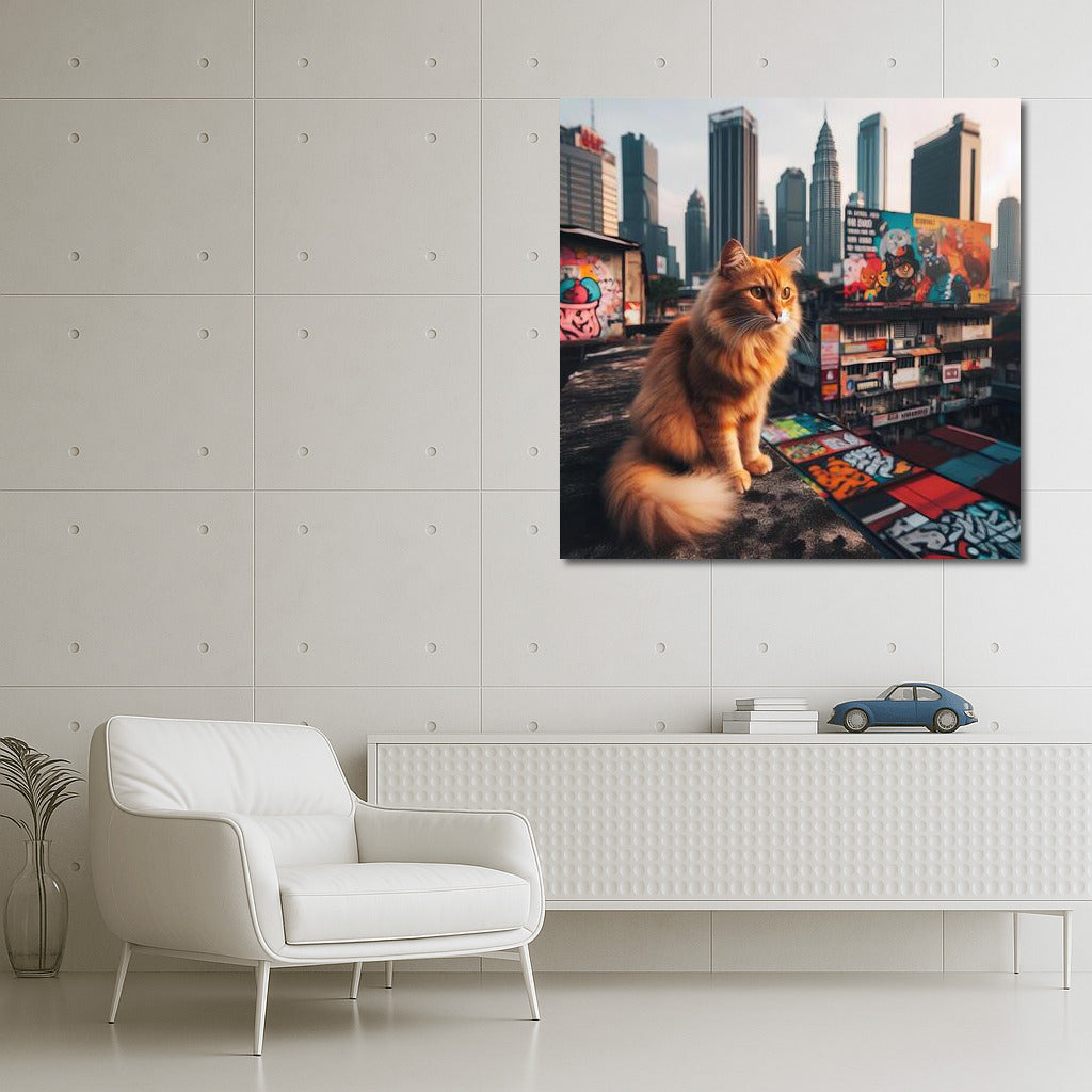 City Cat on the Roof: The Charm of High-Rises and Graffiti Wall Art