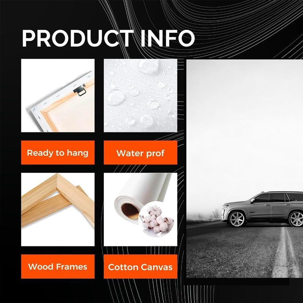** This wall art is pure bomb! Cadillac poster, black and white style. This painting is just top for the garage or man corner. Legend on the wall, bro! See more from the collection: Cadillac Art