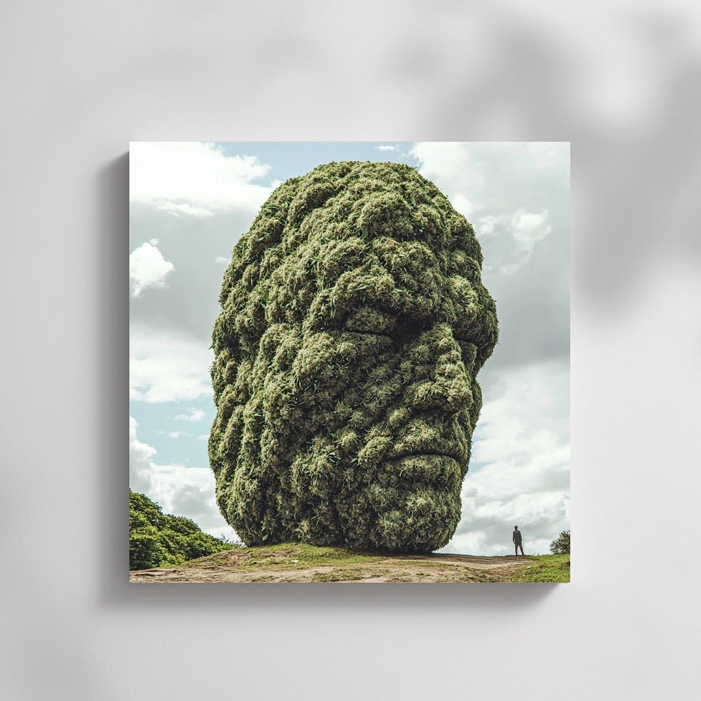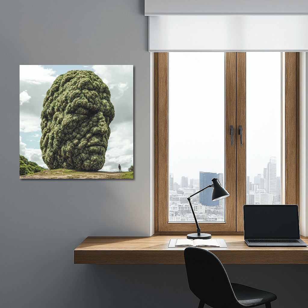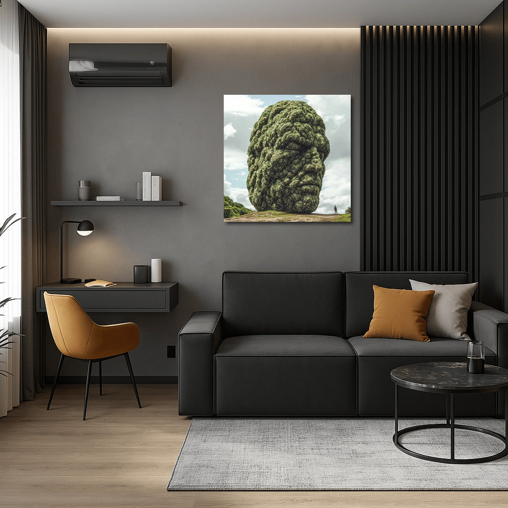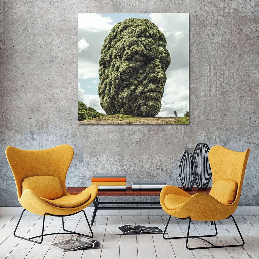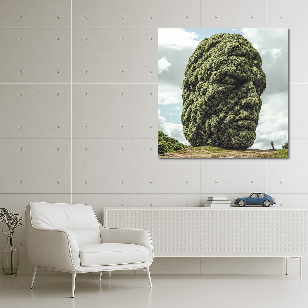 Majestic green giant among clouds - poster that inspires reflections on nature and humanity. Wall art-symbol. See more from the collection: Mixed Wall Art