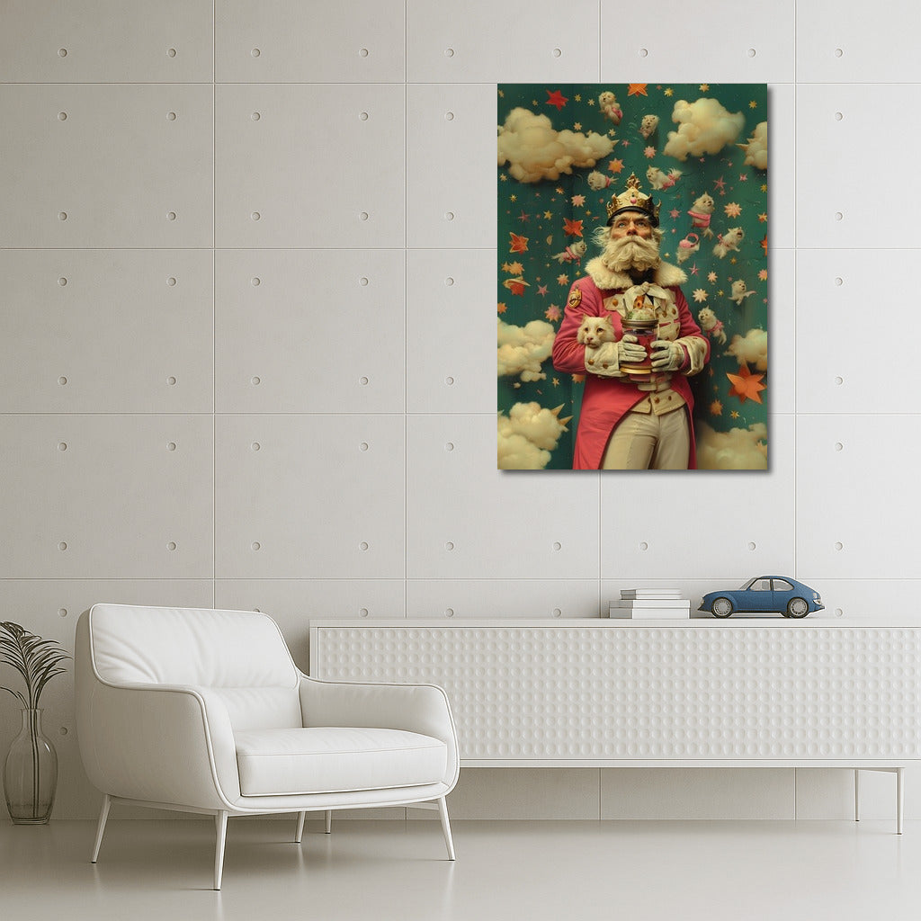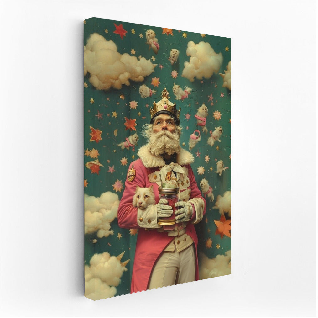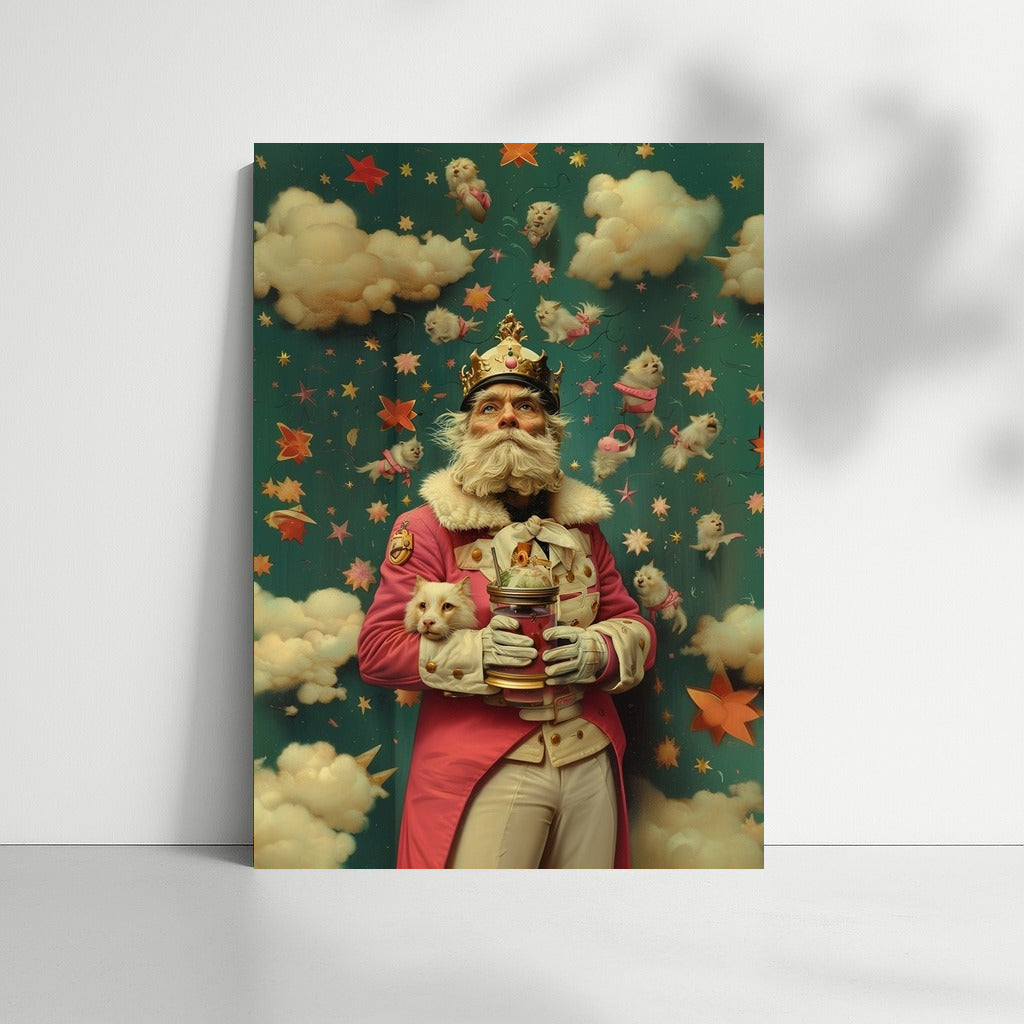 Dive into a fairy tale world with this poster: a whimsical character with furry companions among clouds and stars. Dream wall art! See more from the collection: Mixed Wall Art