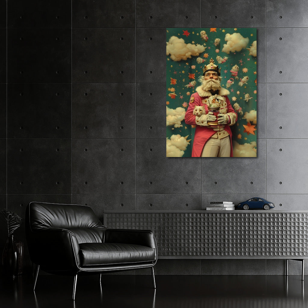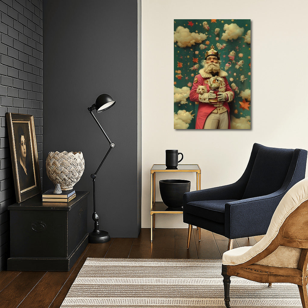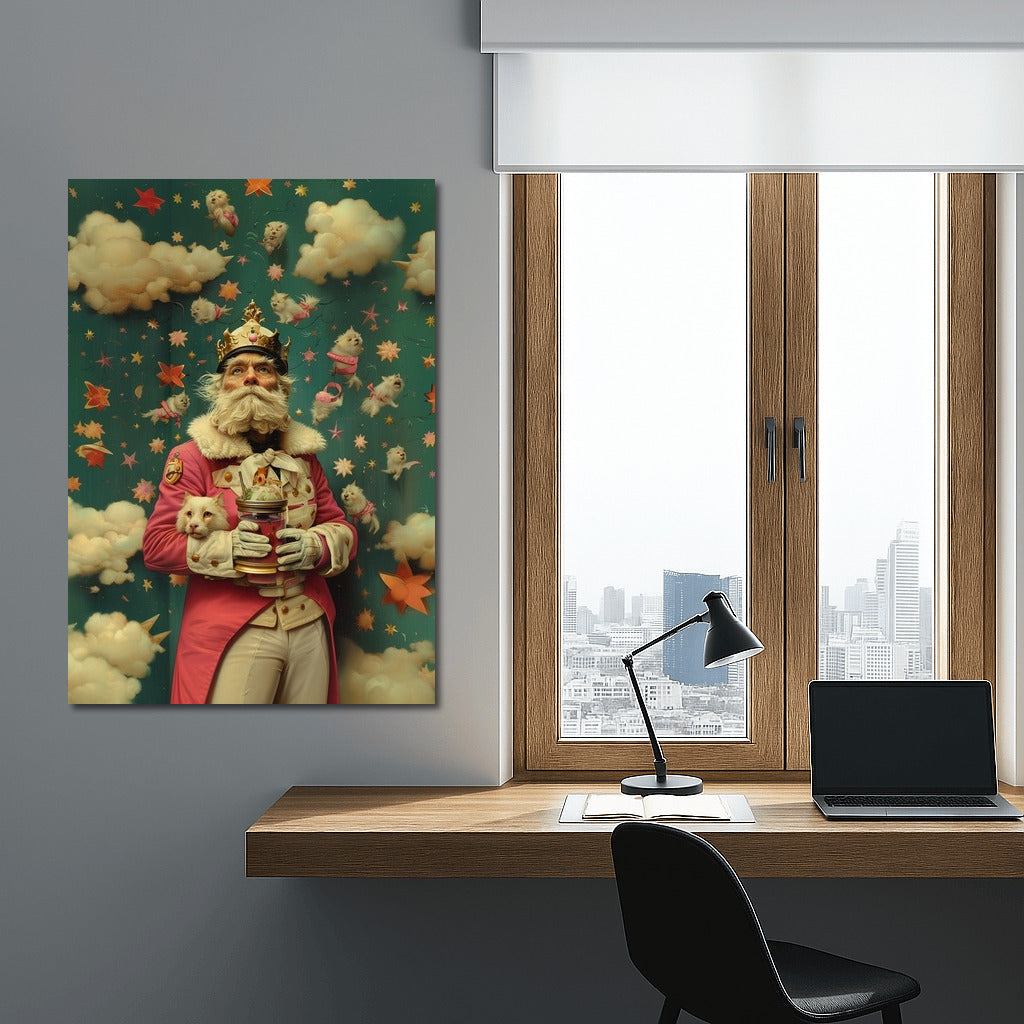 Dive into a fairy tale world with this poster: a whimsical character with furry companions among clouds and stars. Dream wall art! See more from the collection: Mixed Wall Art