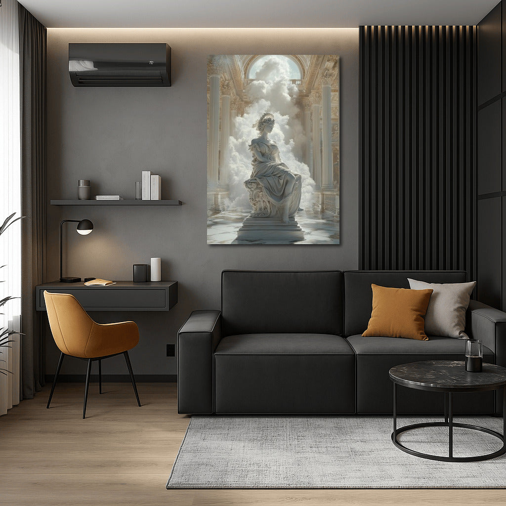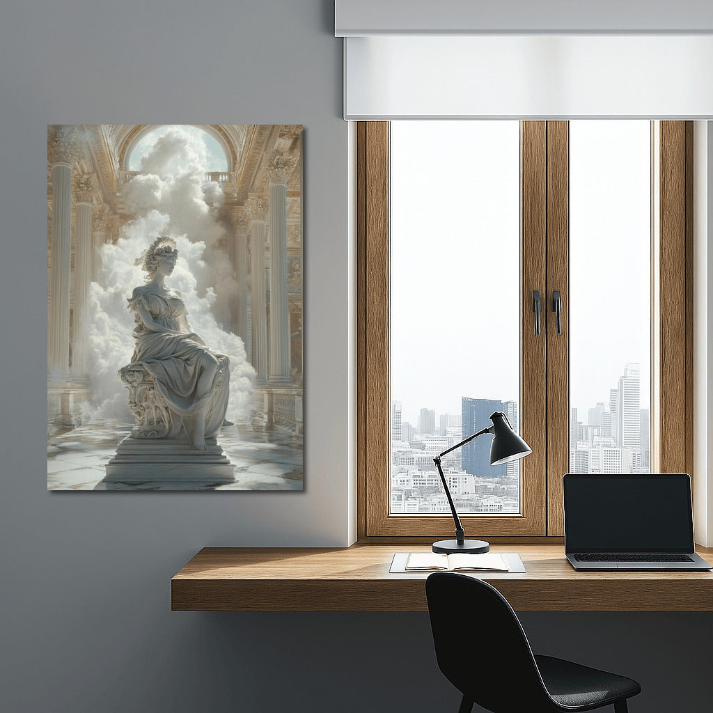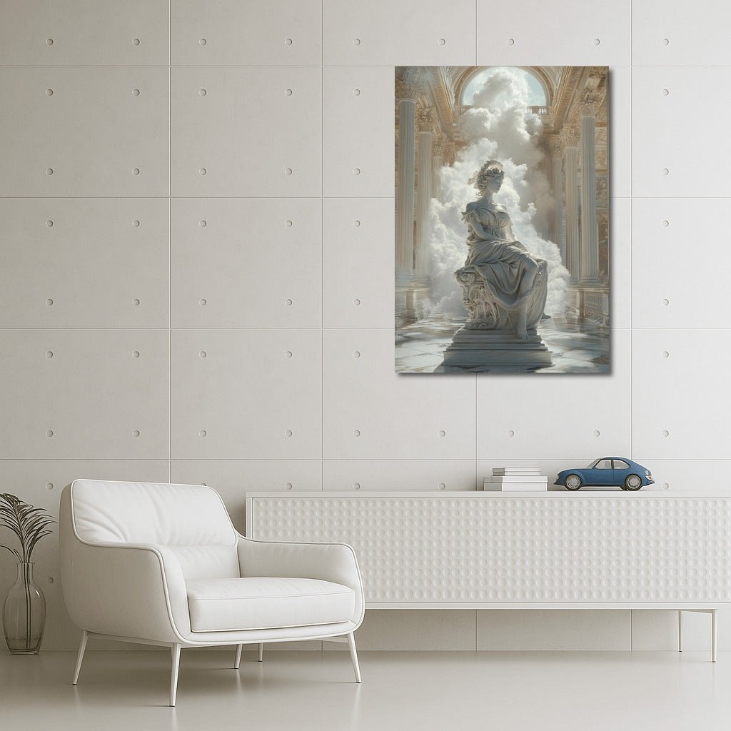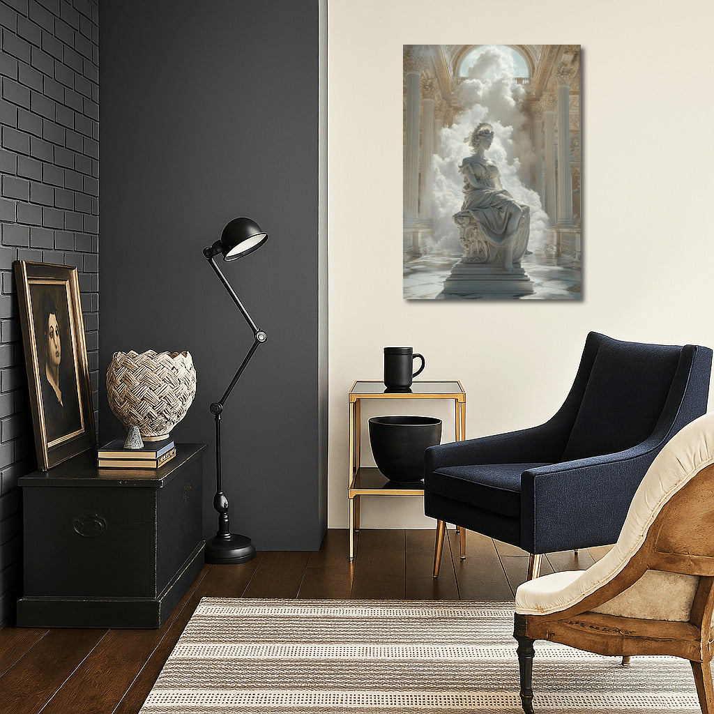 A poster with a majestic statue surrounded by clouds. Art that transports you to a world of antique fantasy and luxury. See more from the collection: Mixed Wall Art