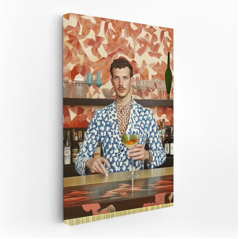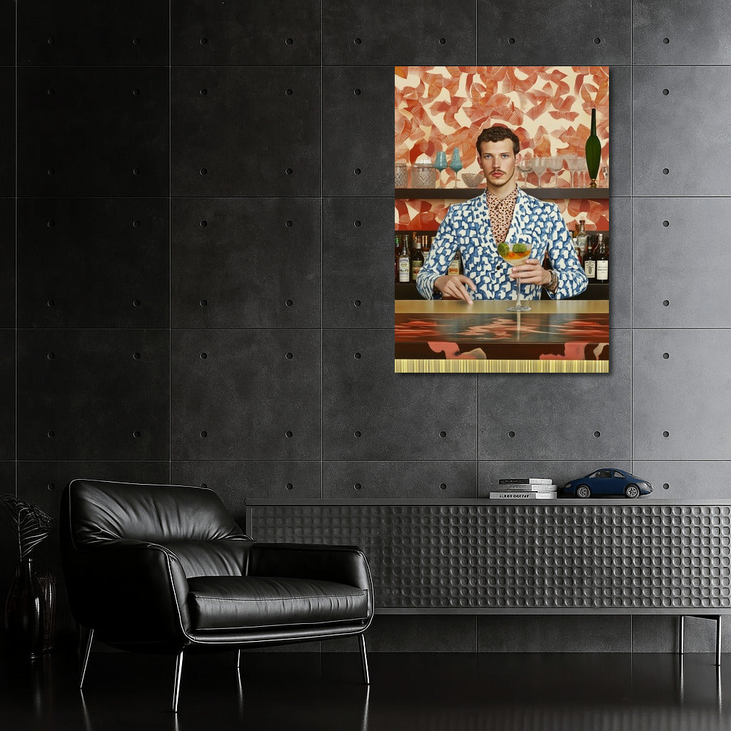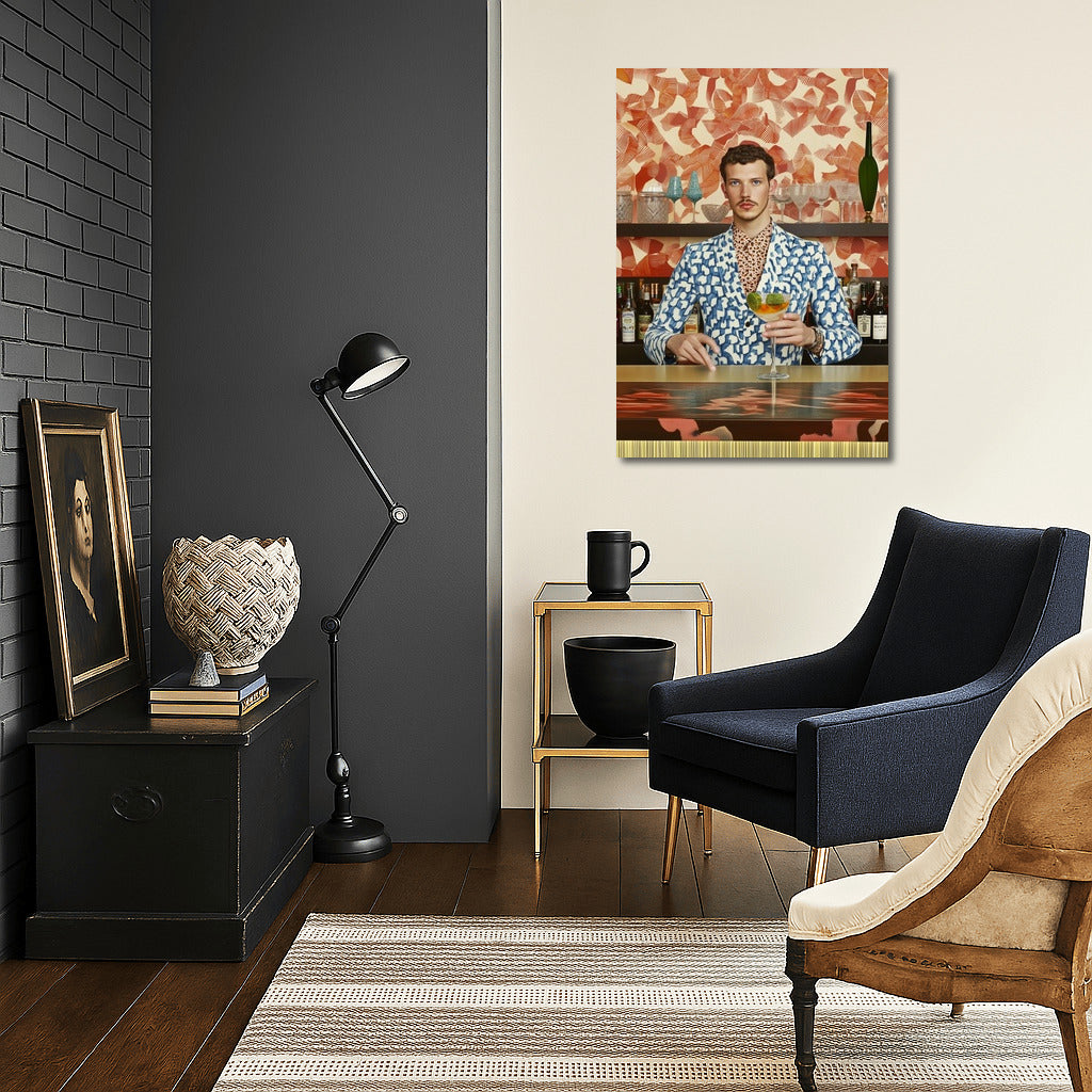 Vibrant wall art: a stylish character with a cocktail in an extravagant interior. A unique accent for your space! See more from the collection: Mixed Wall Art