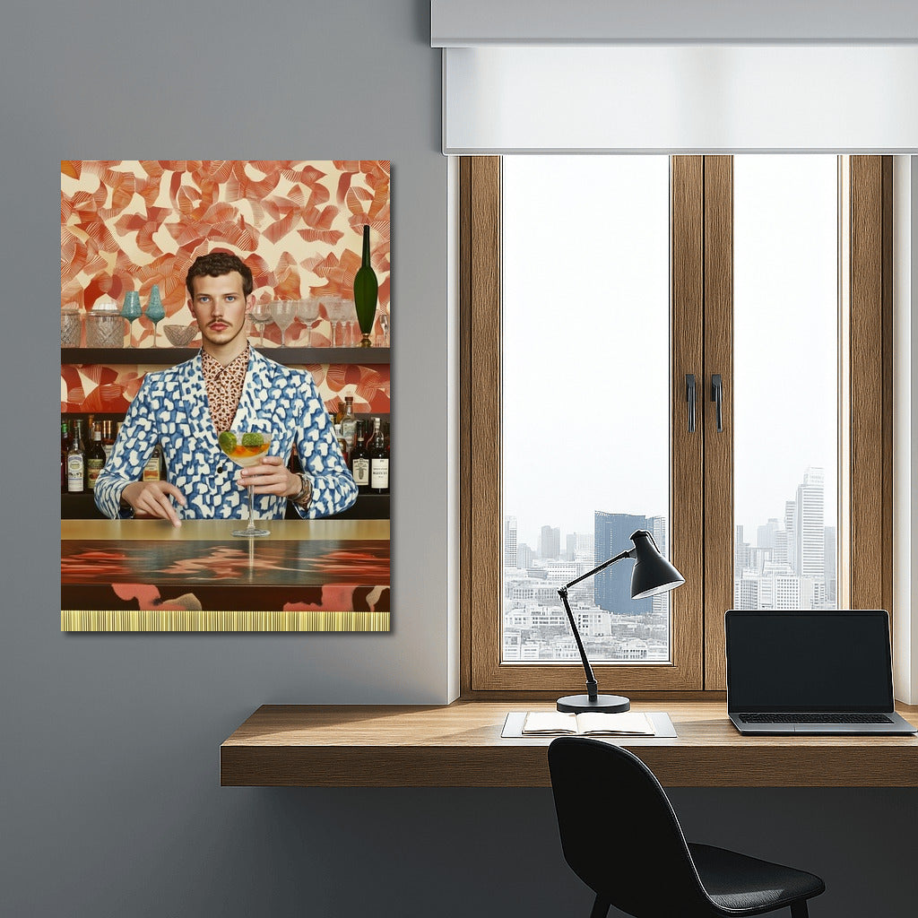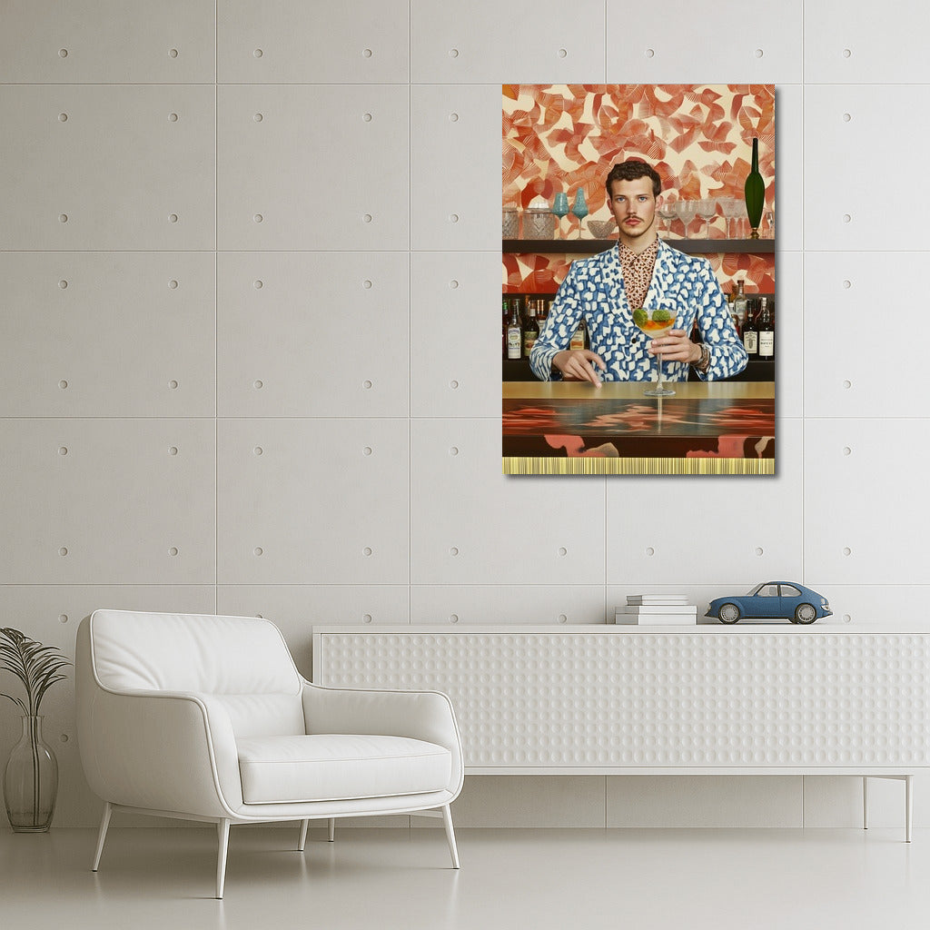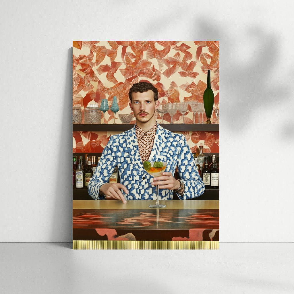 Vibrant wall art: a stylish character with a cocktail in an extravagant interior. A unique accent for your space! See more from the collection: Mixed Wall Art