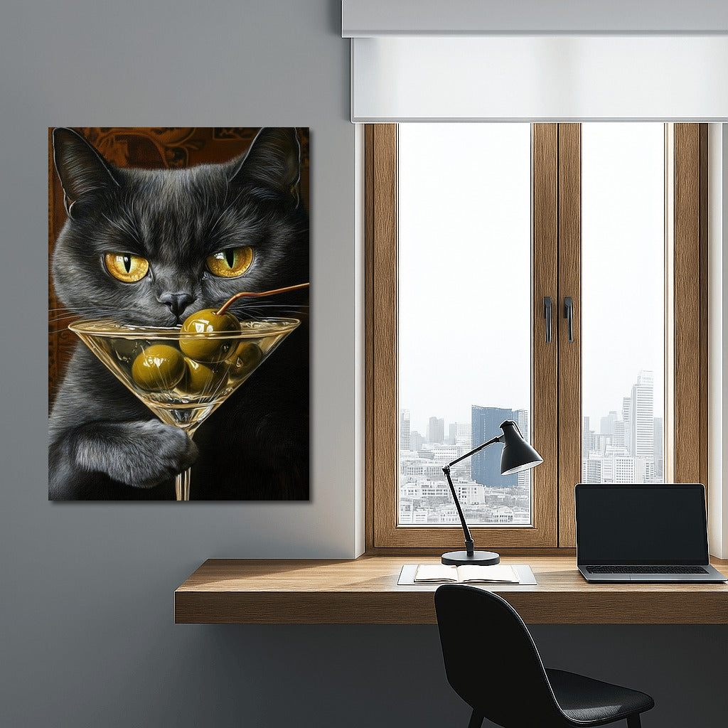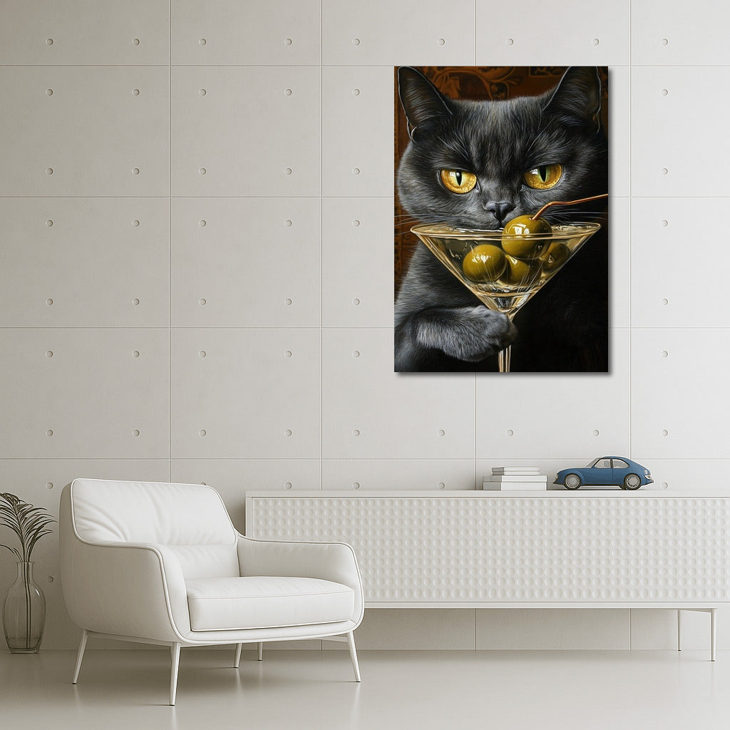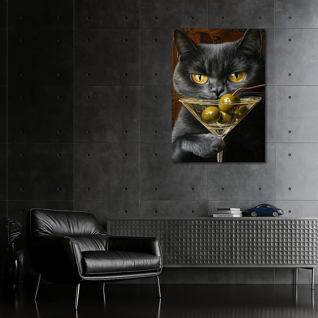 Cocktail and feline charisma. This poster will liven up your space with a stylish and playful accent of wall art! See more from the collection: Animals Art