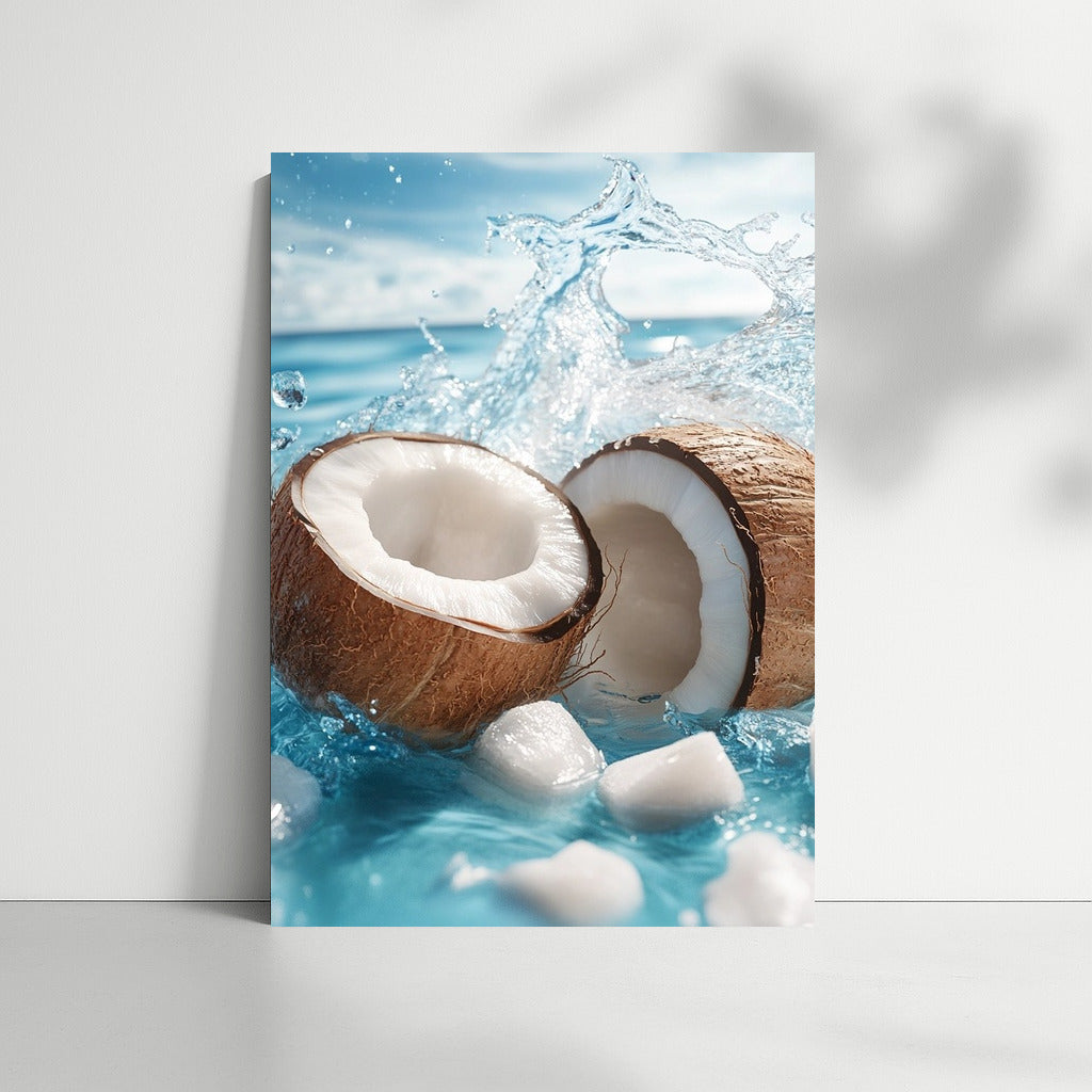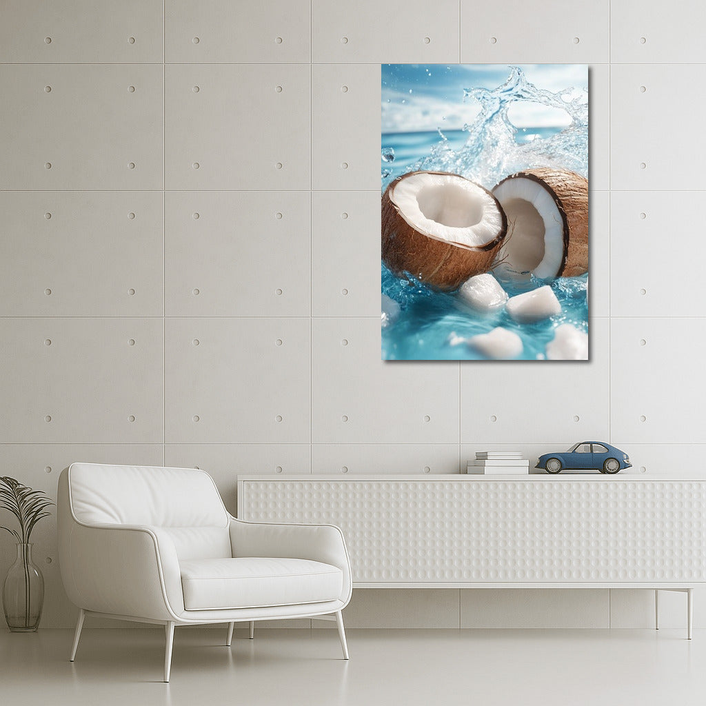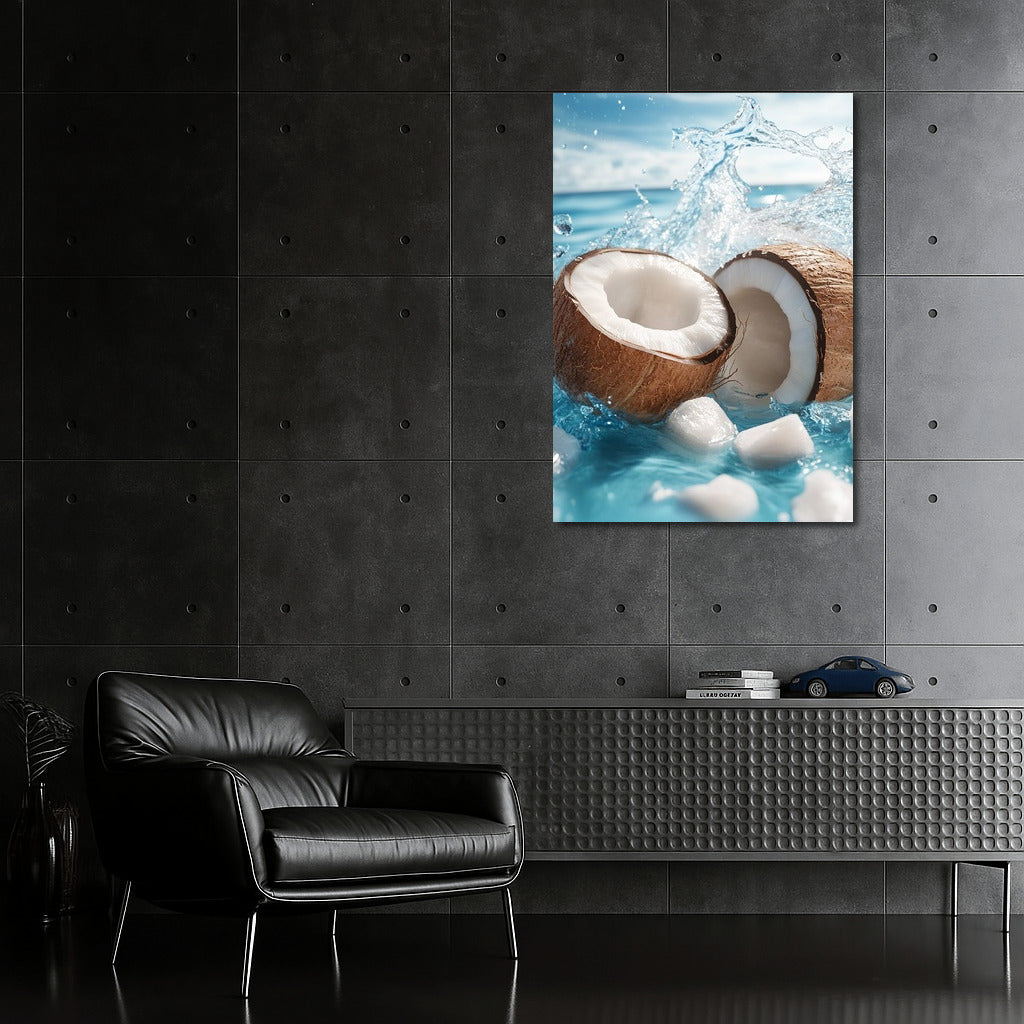 Tropical inspiration: juicy coconut in ocean spray. Refreshing wall art for a bright interior. See more from the collection: Food Art