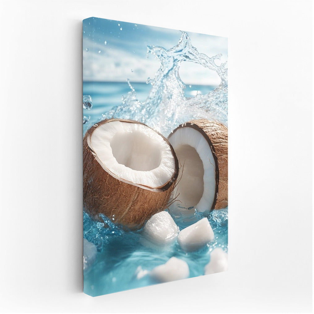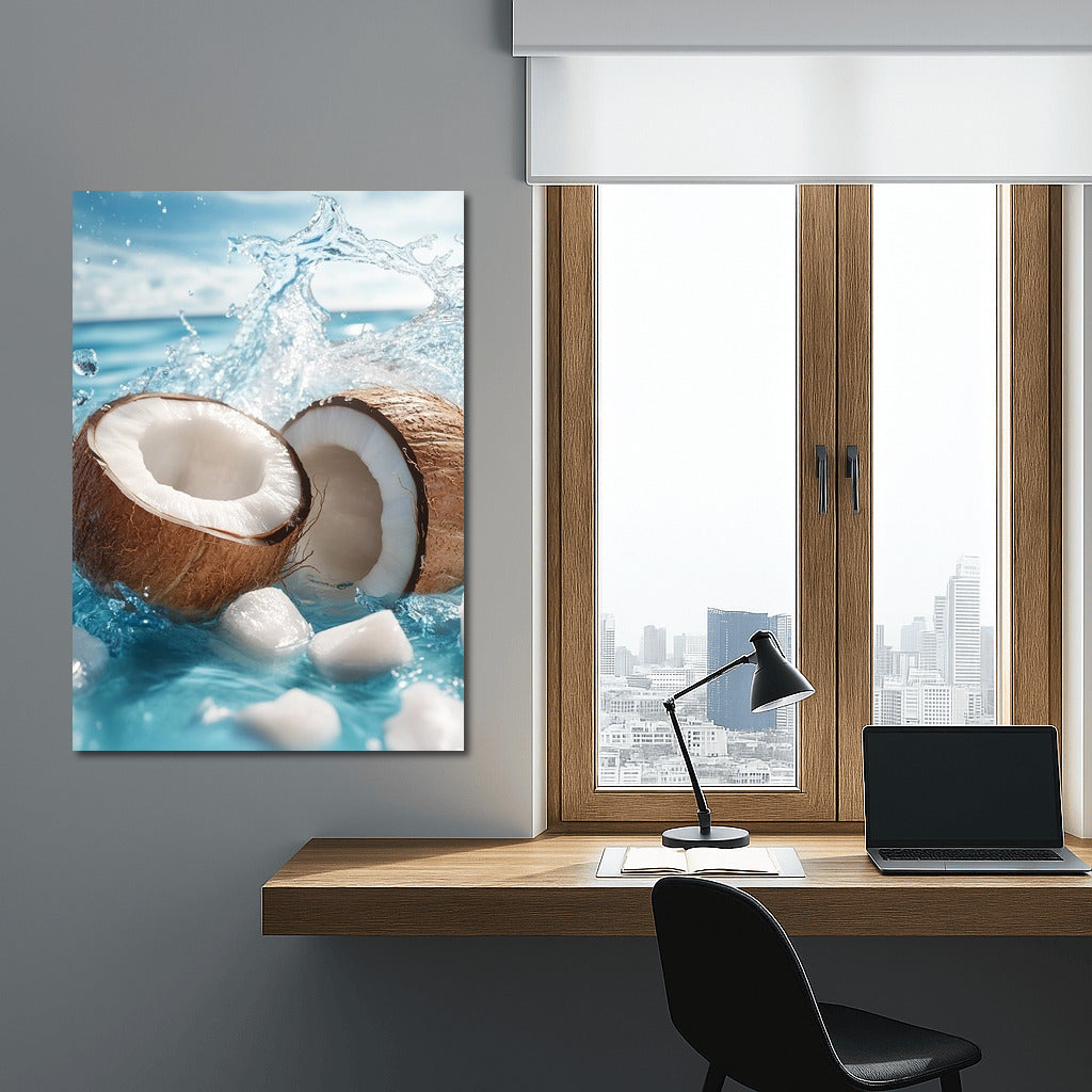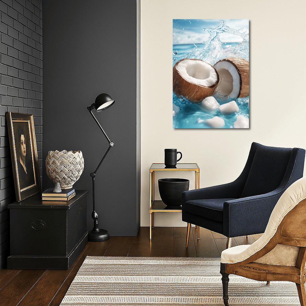 Tropical inspiration: juicy coconut in ocean spray. Refreshing wall art for a bright interior. See more from the collection: Food Art