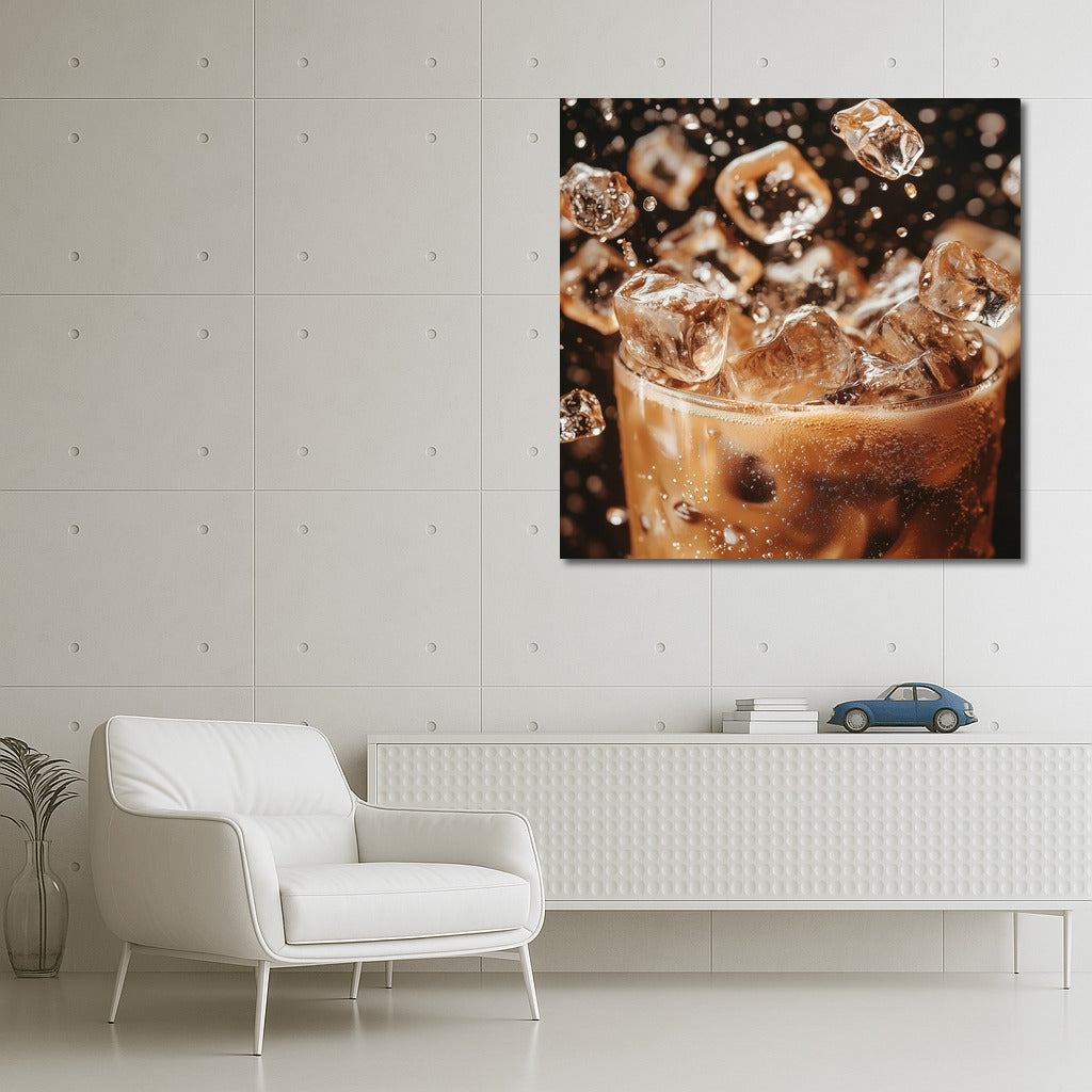 Ice cubes in motion! The poster enlivens the wall space with a play of edges and light, adding freshness to your interior. See more from the collection: Coffee & Tea Art & Drinks