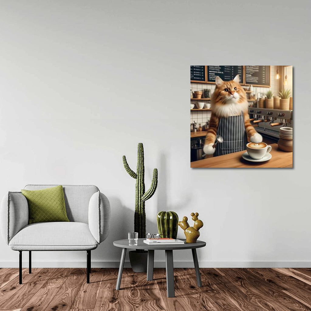 Coffee Magic: Cat Barista in Action Wall Art