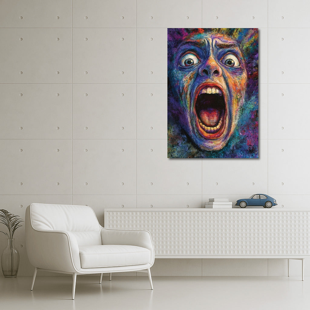 An explosion of emotion and color, this painting turns a scream into vibrant wall art that expresses the power of human emotion. See more from the collection: Surreal Art
