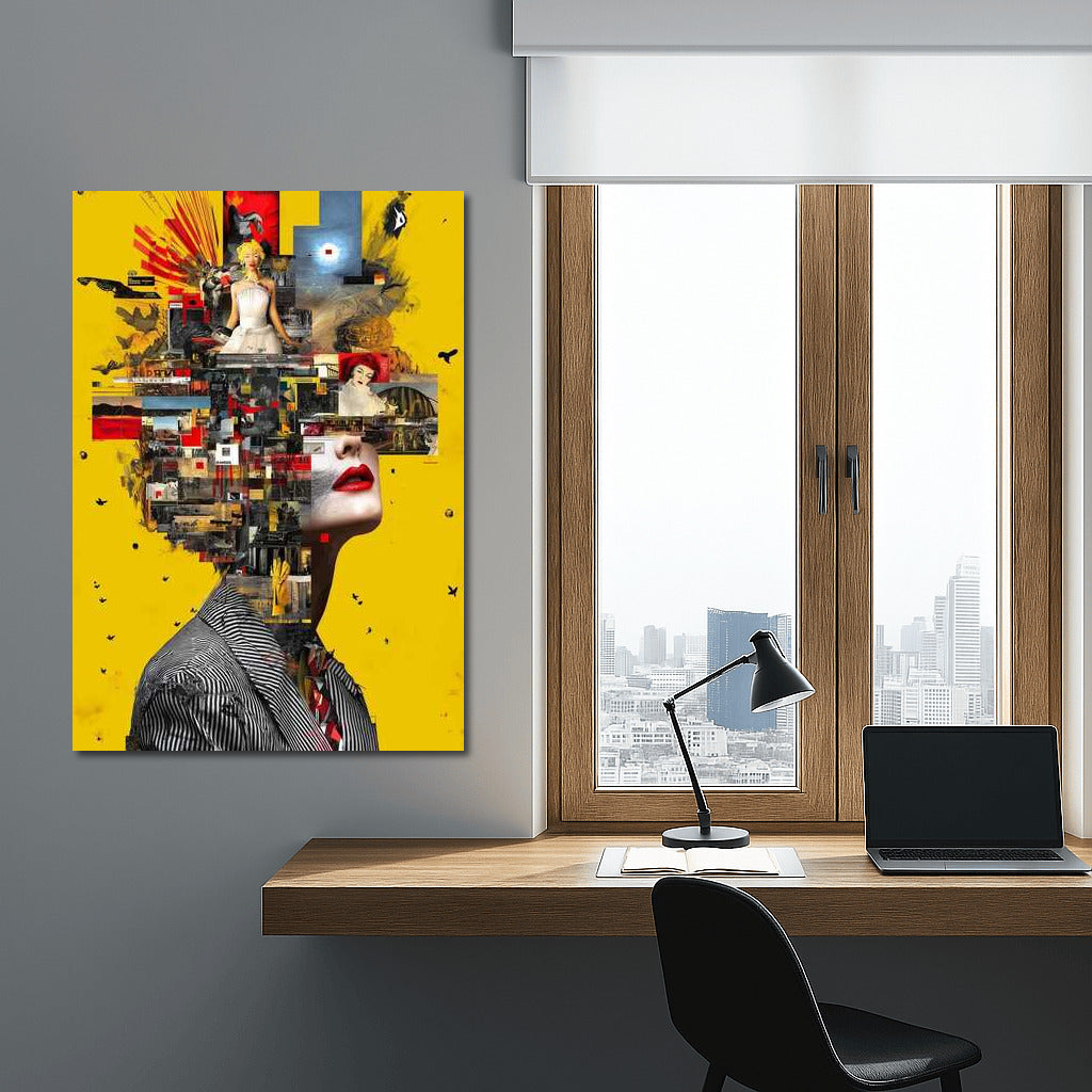 An explosion of color and shapes: a maximalist canvas turns chaos into art. A bold wall decoration for your space. See more from the collection: Maximalist Art