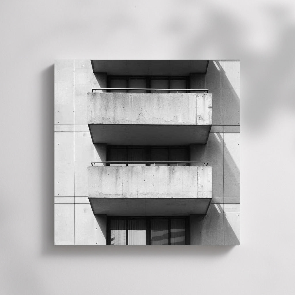 Concrete Balconies: Urban Harmony in Minimalism and Shadows Wall Art