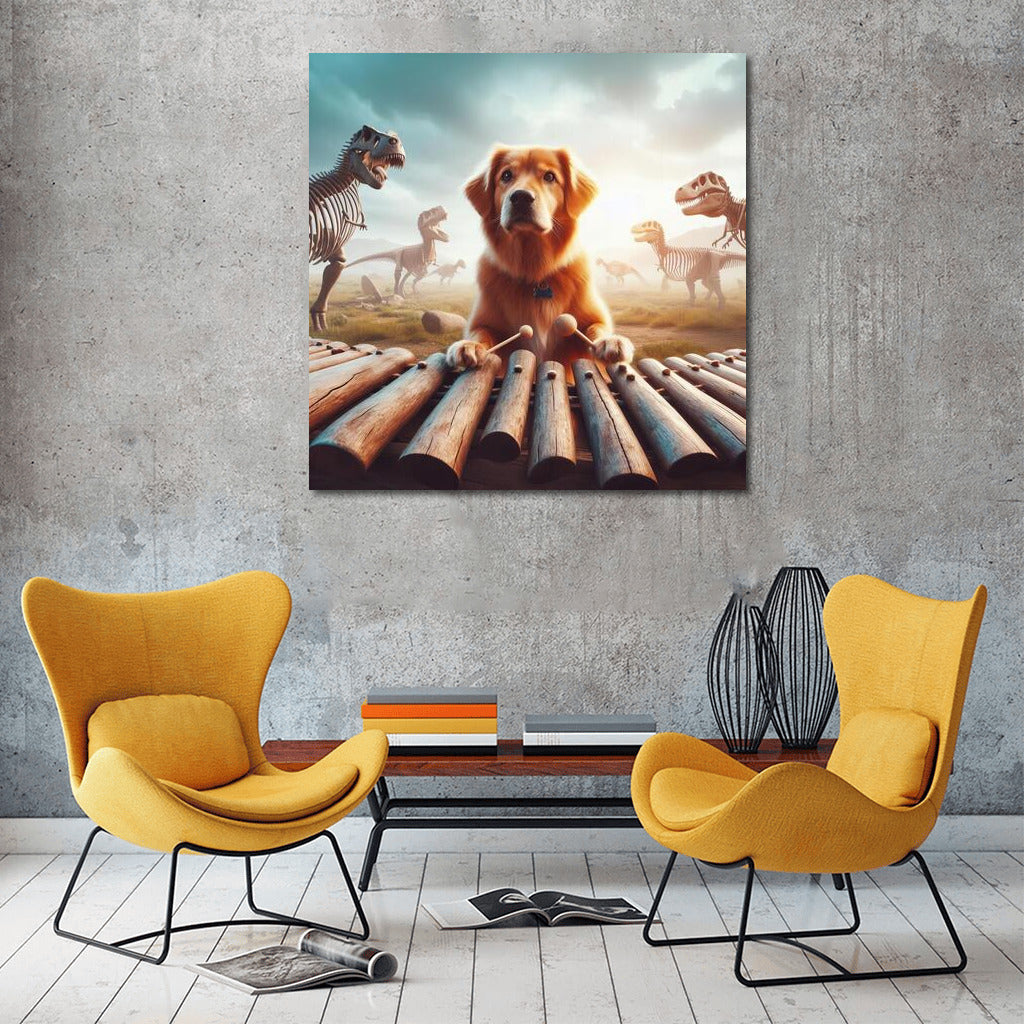 Conductor Dog: Symphony on a Xylophone of Dinosaur Bones Wall Art