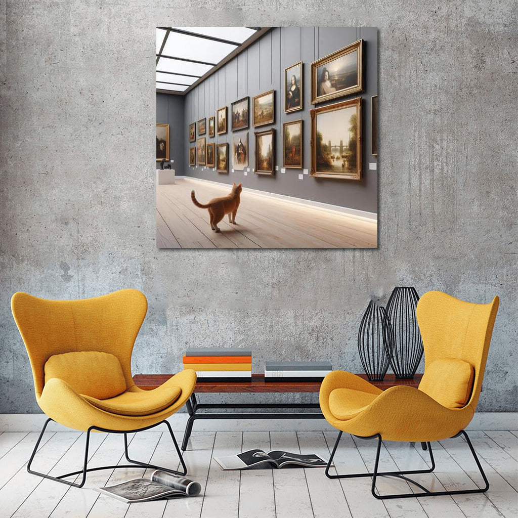 Connoisseur Cat in Minimalist Gallery: A Furry Take on Contemporary Art Wall Art