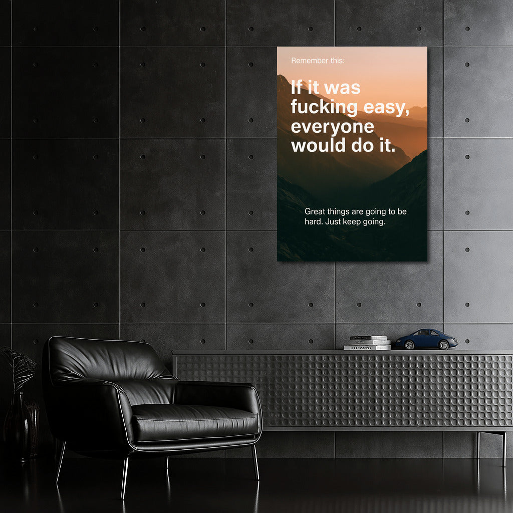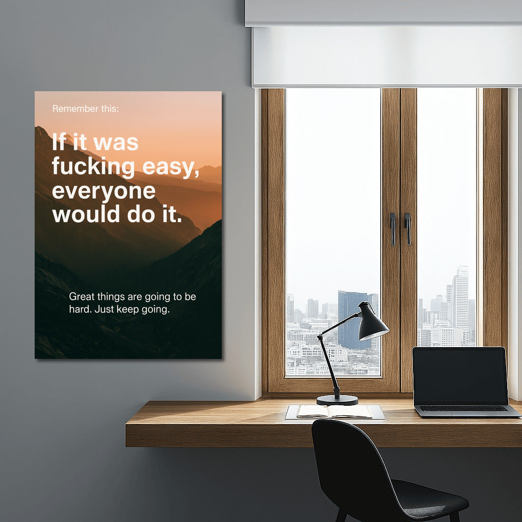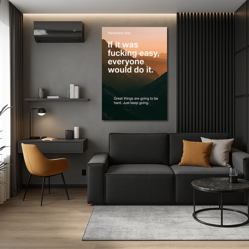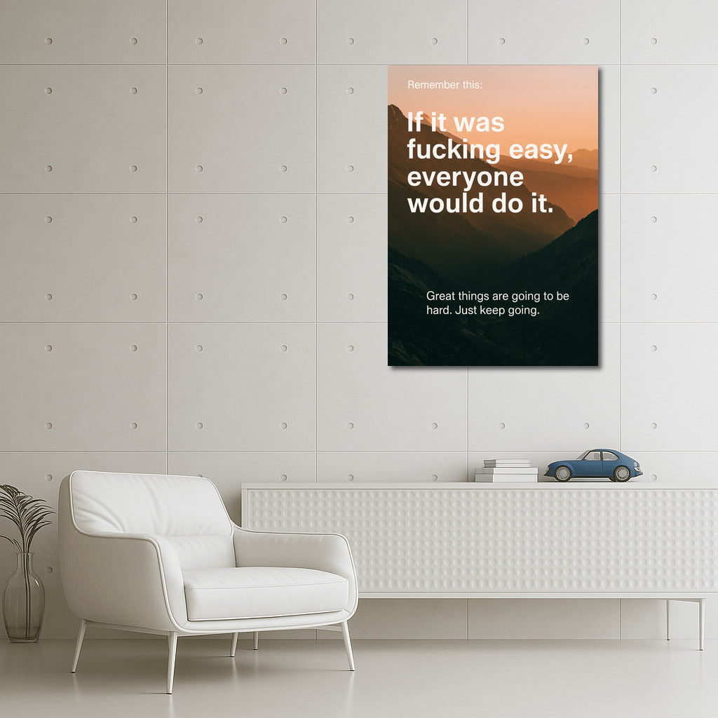 A painting for those who are going to the top. If it was easy, everyone would do it. Wall art about efforts and fortitude. See more from the collection: Inspirational & Motivational Quotes Art