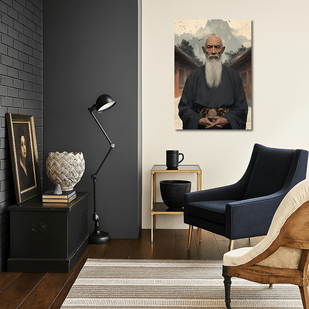 Inspirational poster: a sage in harmony with nature and Eastern architecture enlivens the space, adding depth and tranquility. See more from the collection: Mixed Wall Art