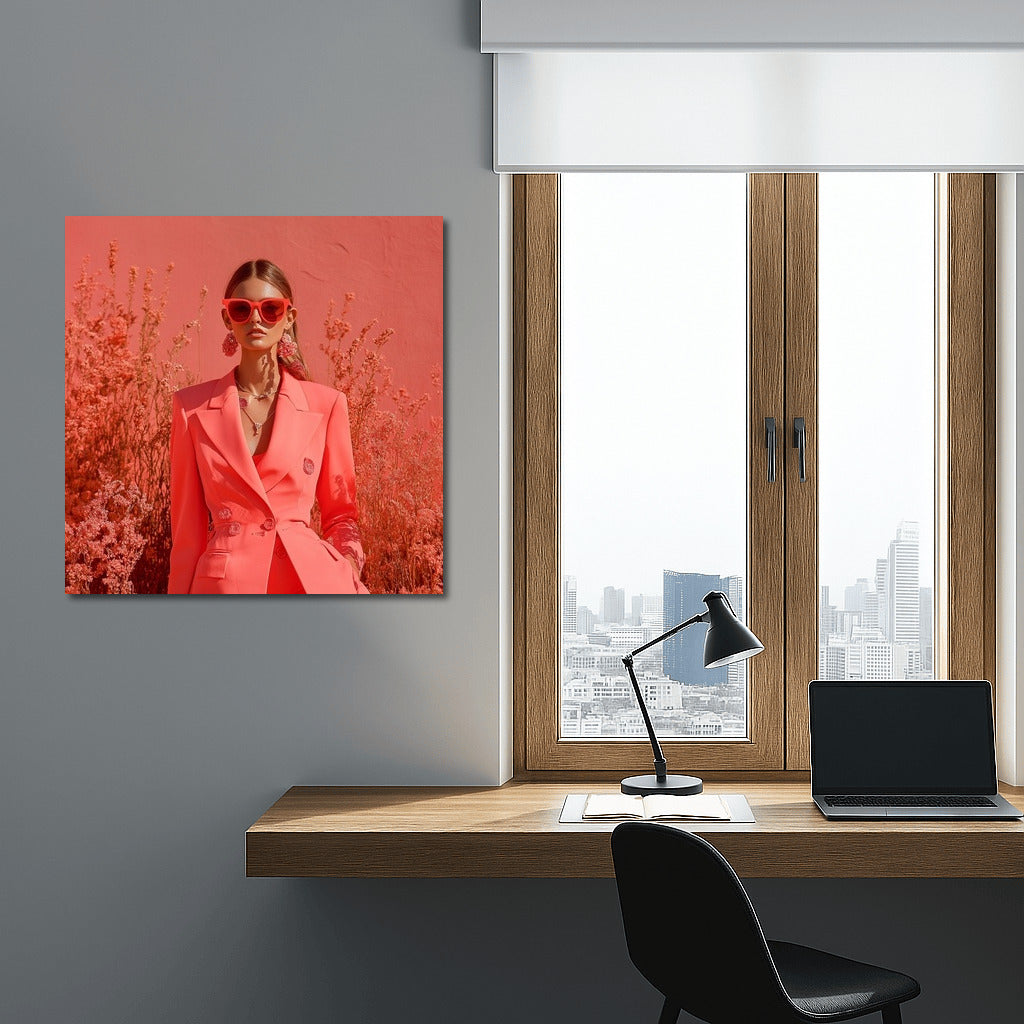 An elegant painting in coral tones: a stylish figure in harmony with nature. Contemporary wall art for bright interiors. See more from the collection: Fashion Art