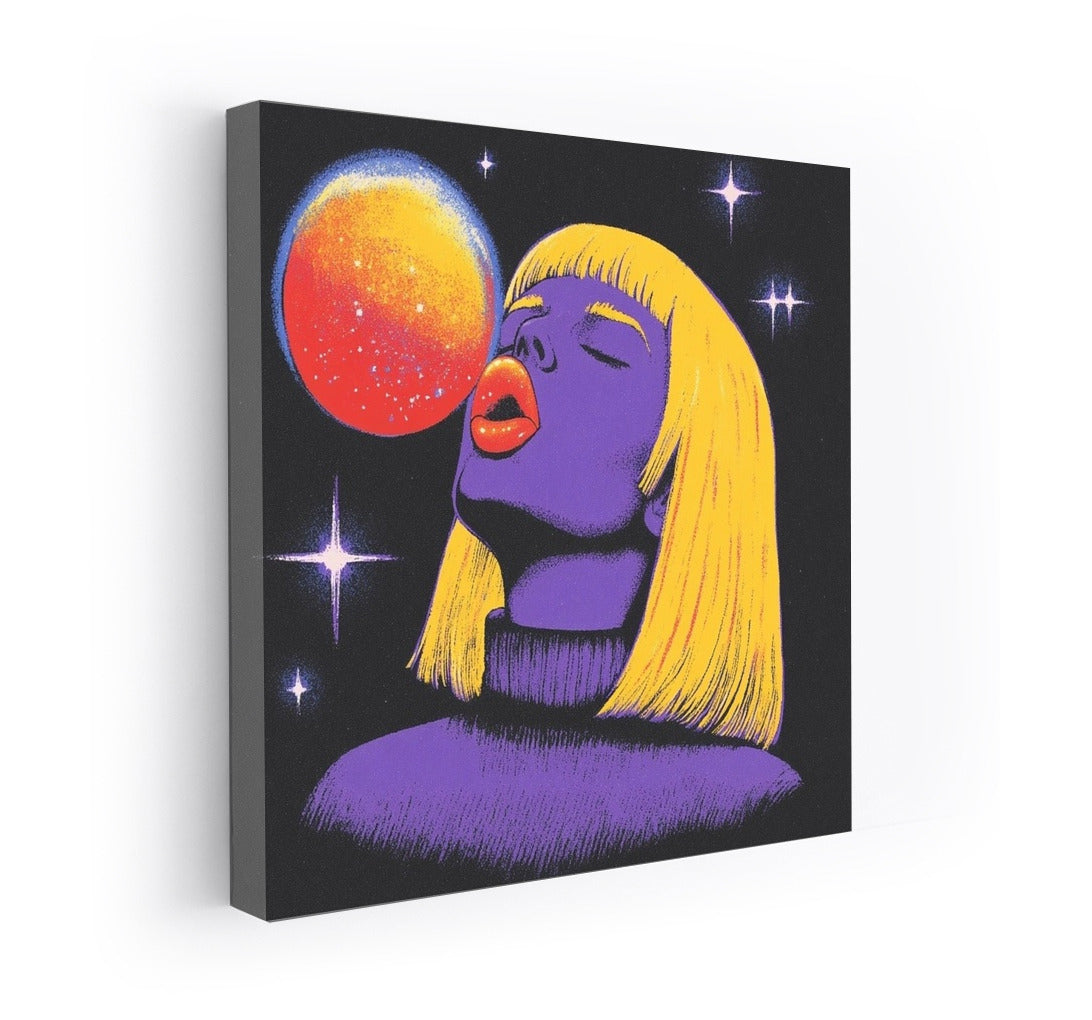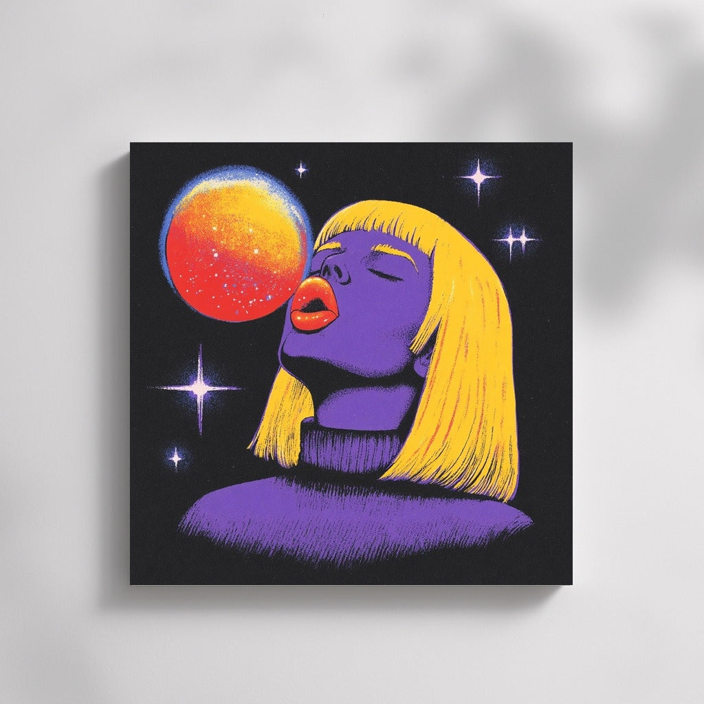 Incredible poster: mysterious girl and shining planet. Space wall art for your interior! ✨? See more from the collection: Pop Art