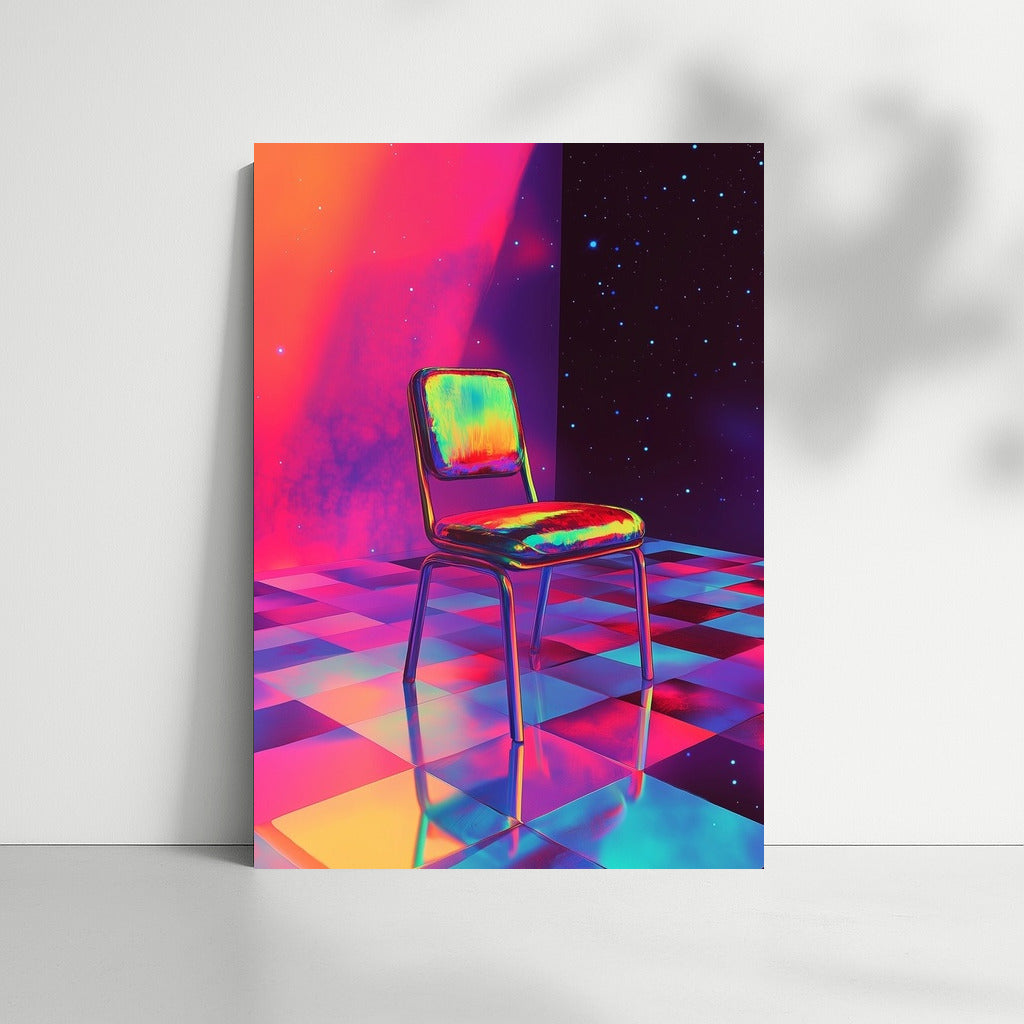 Dive into neon dreams with this vibrant composition! The abstract painting will bring cosmic glow to your interior. See more from the collection: Neon Art