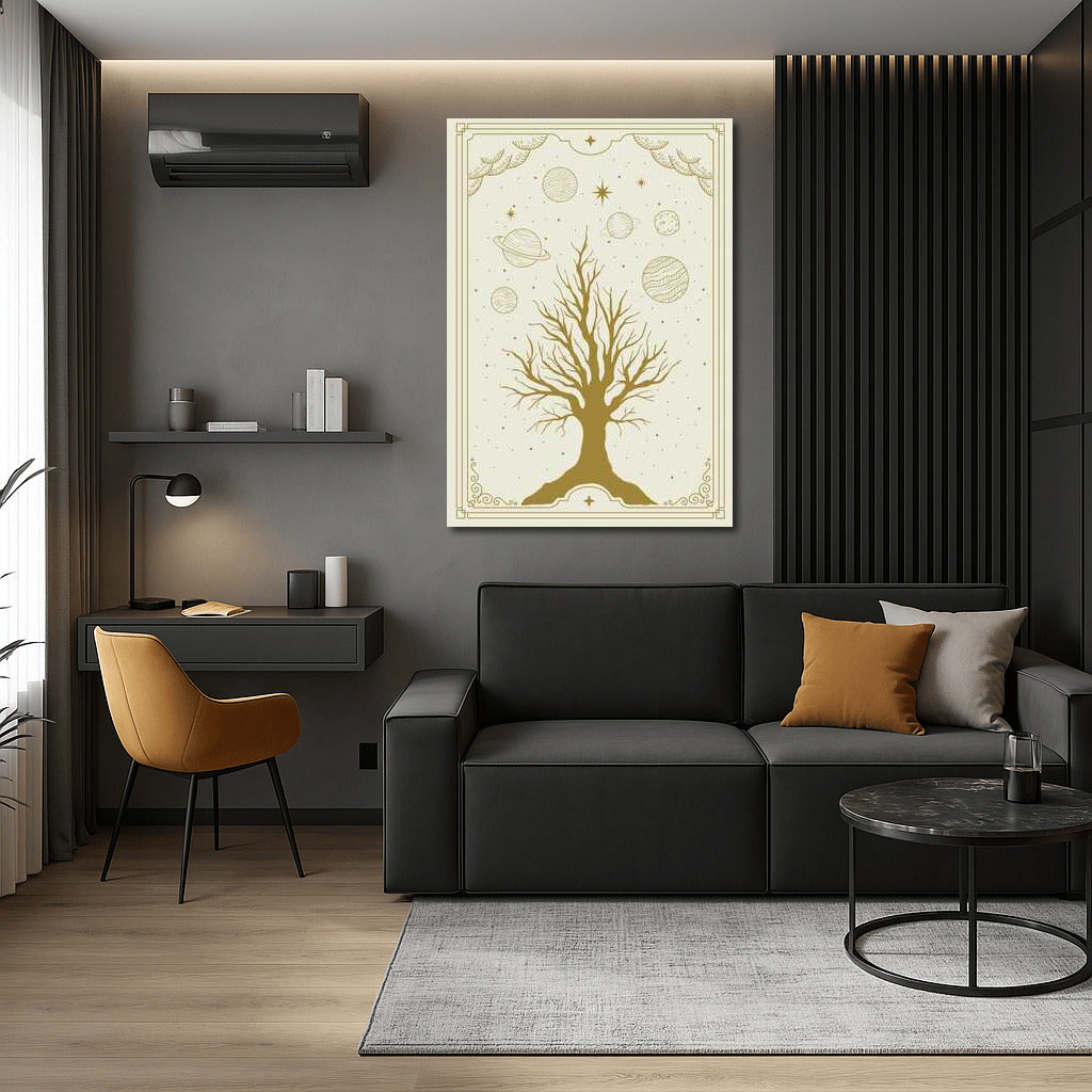 Mysterious poster: a tree reaches for the stars and planets. Wall art that opens the door to cosmic dreams. ✨? See more from the collection: Zodiac Sign & Astrology Art