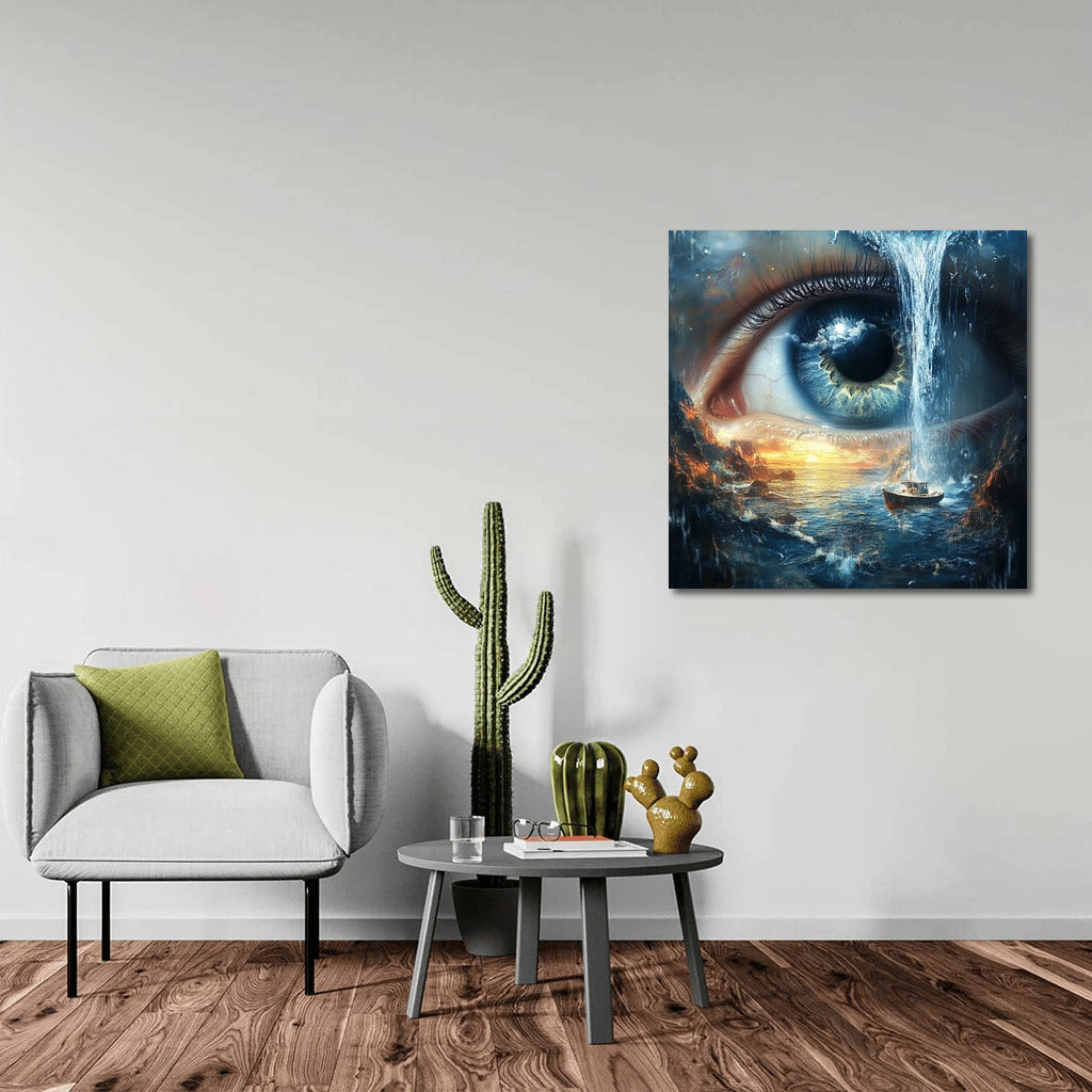 Mysterious wall art: the universe in the eyes, a waterfall of emotions and a journey in dreams. A unique poster for the soul and home. See more from the collection: Mixed Wall Art