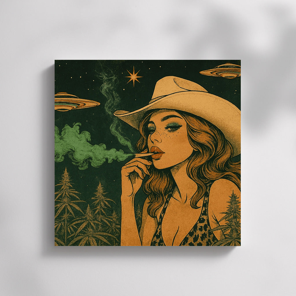 Cowgirl and the Space Cannabis: Retro Journey Wall Art
