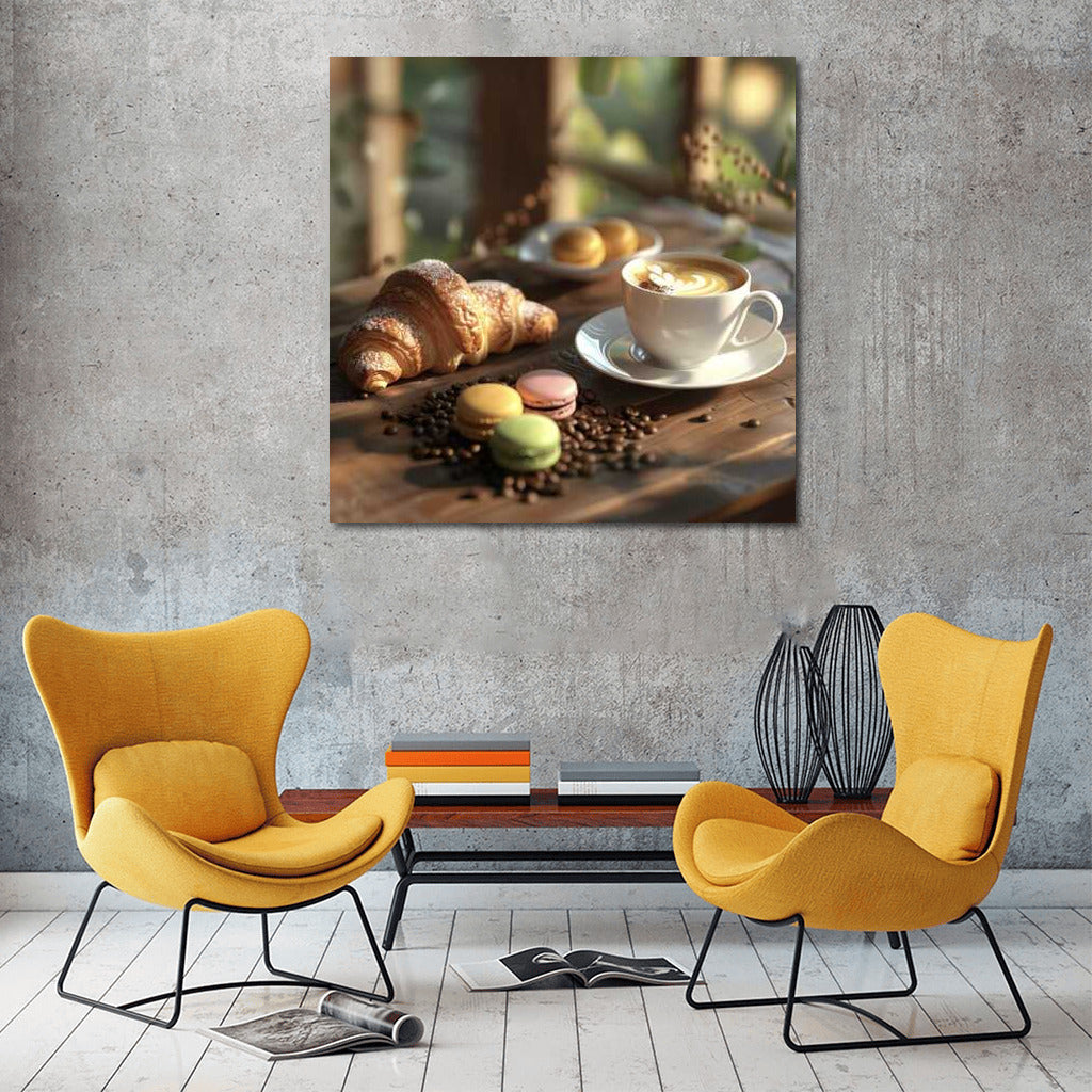 Cozy Breakfast with Croissants and Macarons Wall Art