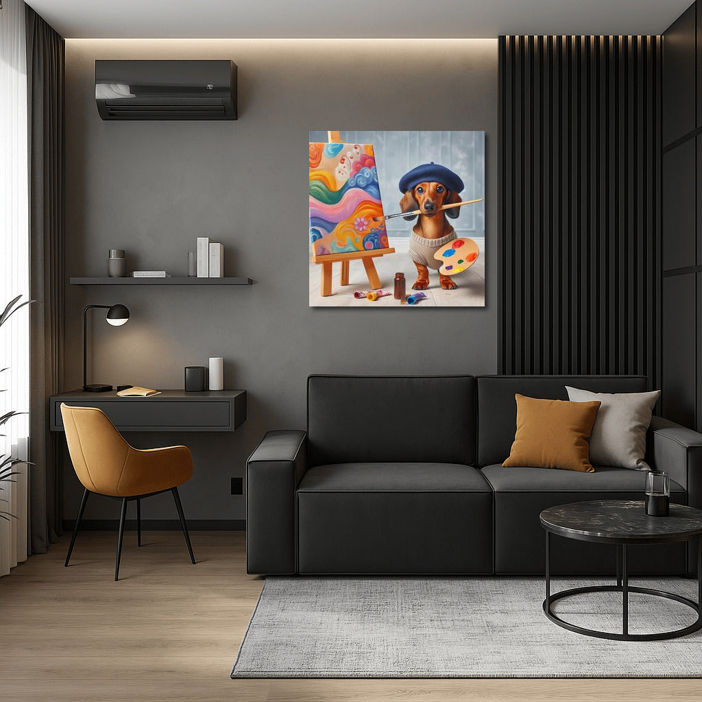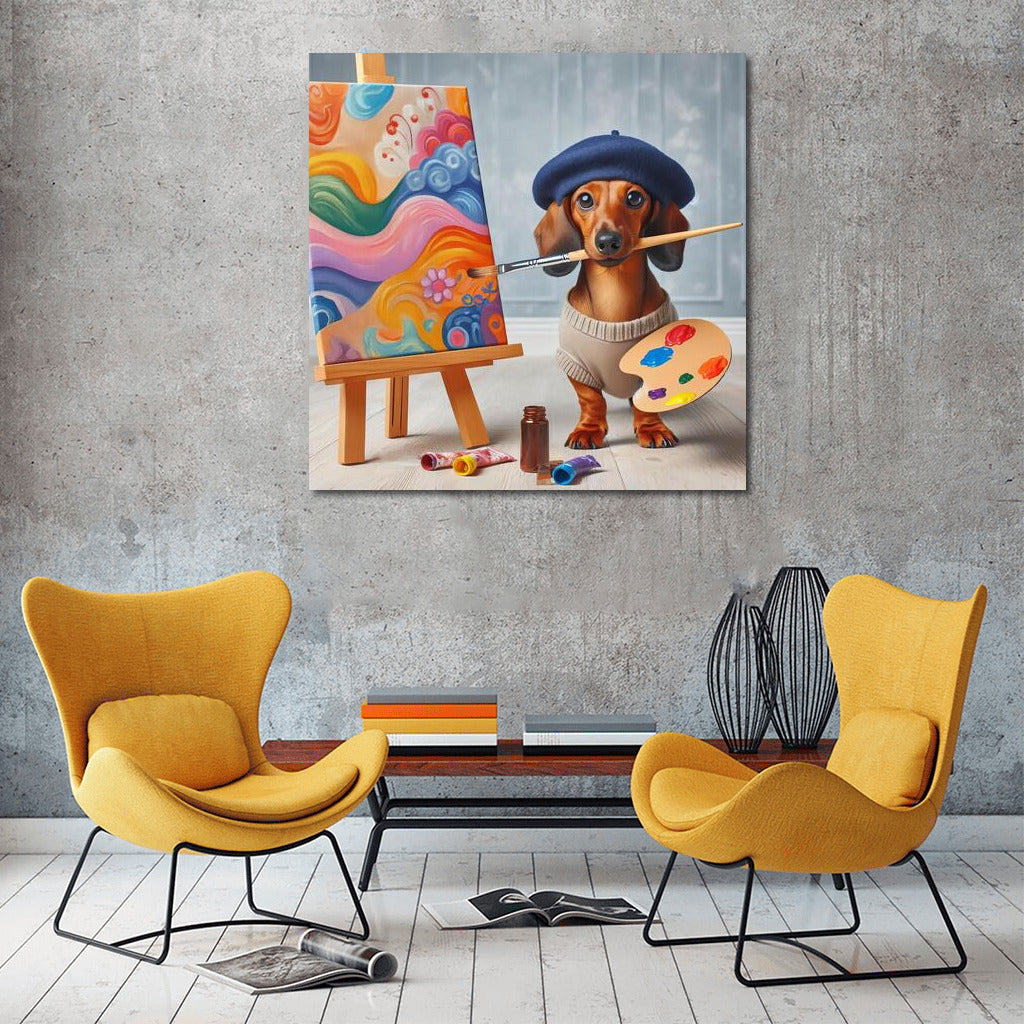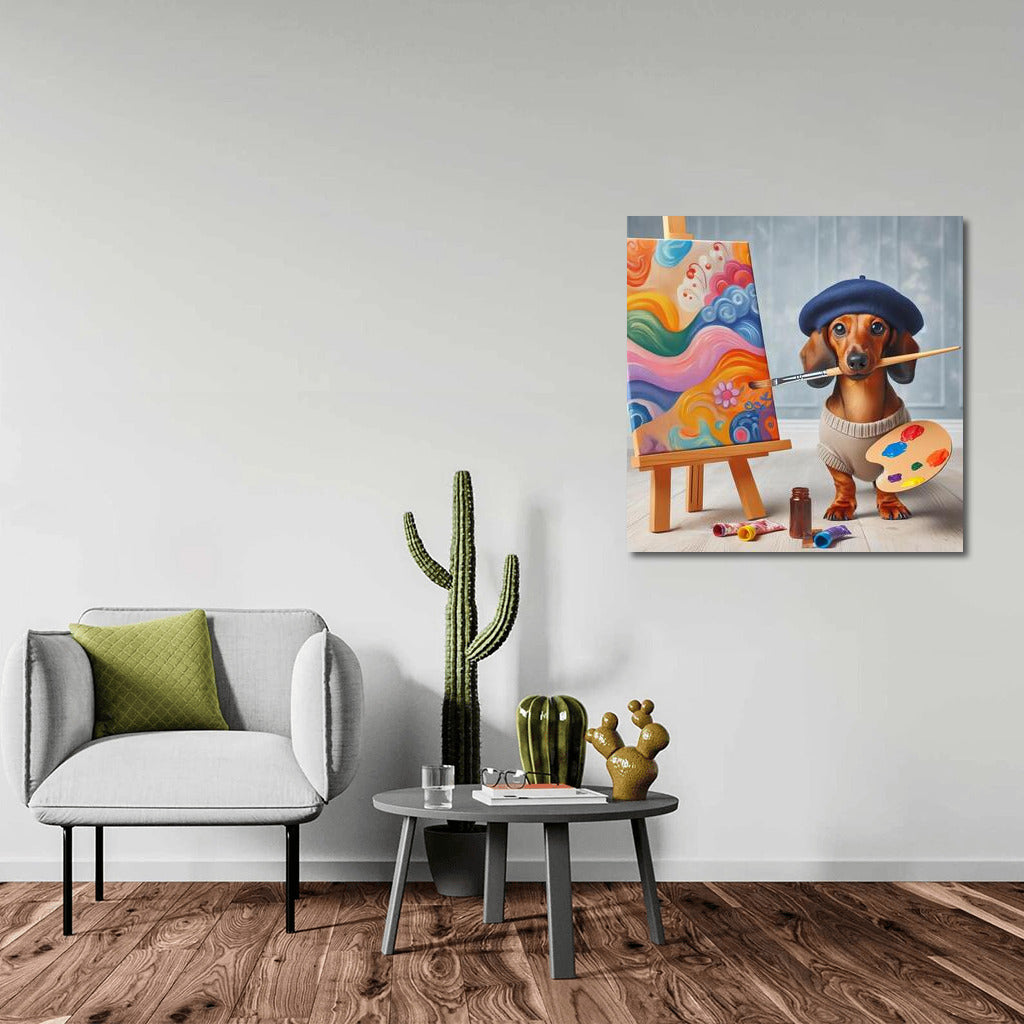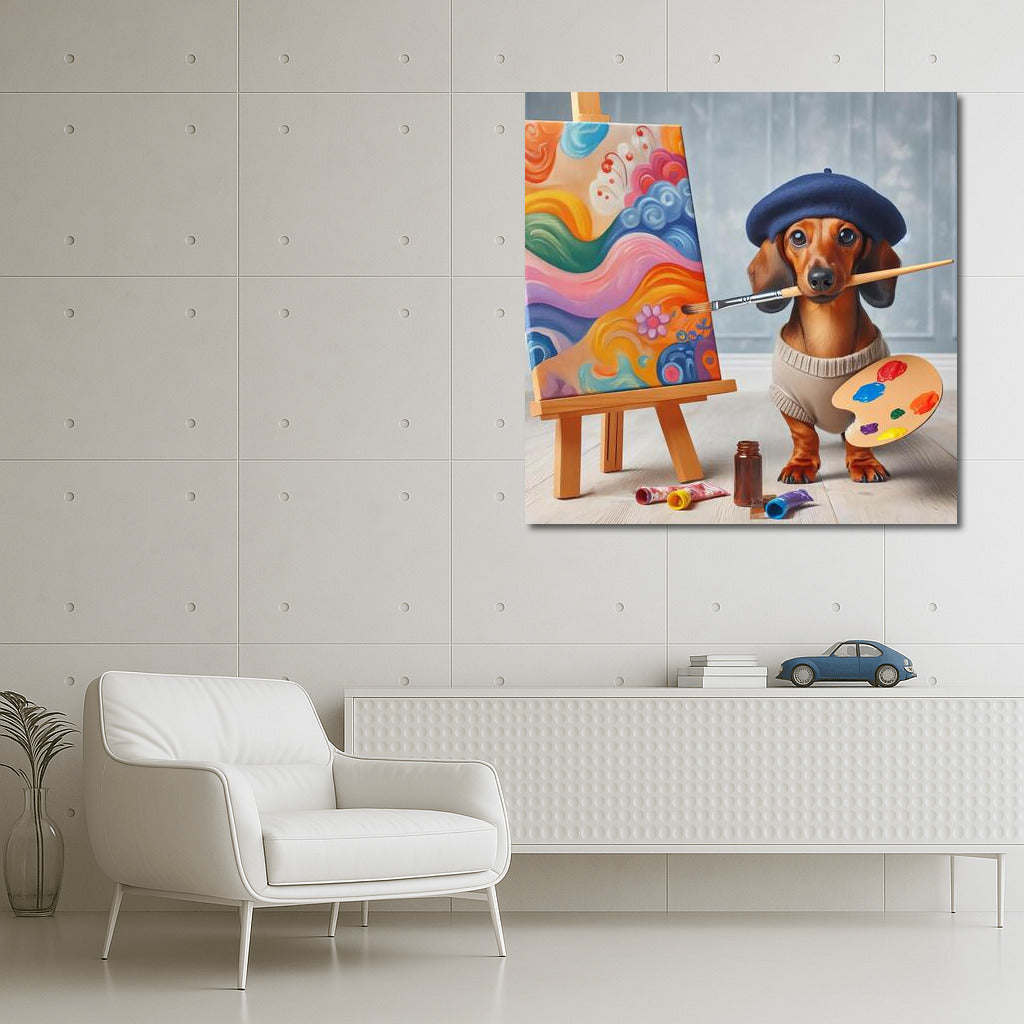 Adorable artist dog with a brush creates bright wall art. The perfect poster to inspire and make you smile! See more from the collection: Animals Art