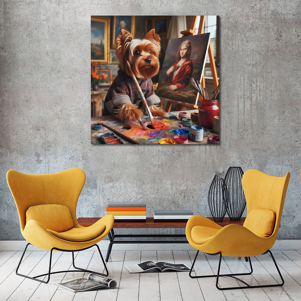 Yorkshire Terrier in the art studio works wonders! This poster will liven up your walls and inspire creative feats. See more from the collection: Animals Art